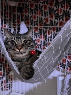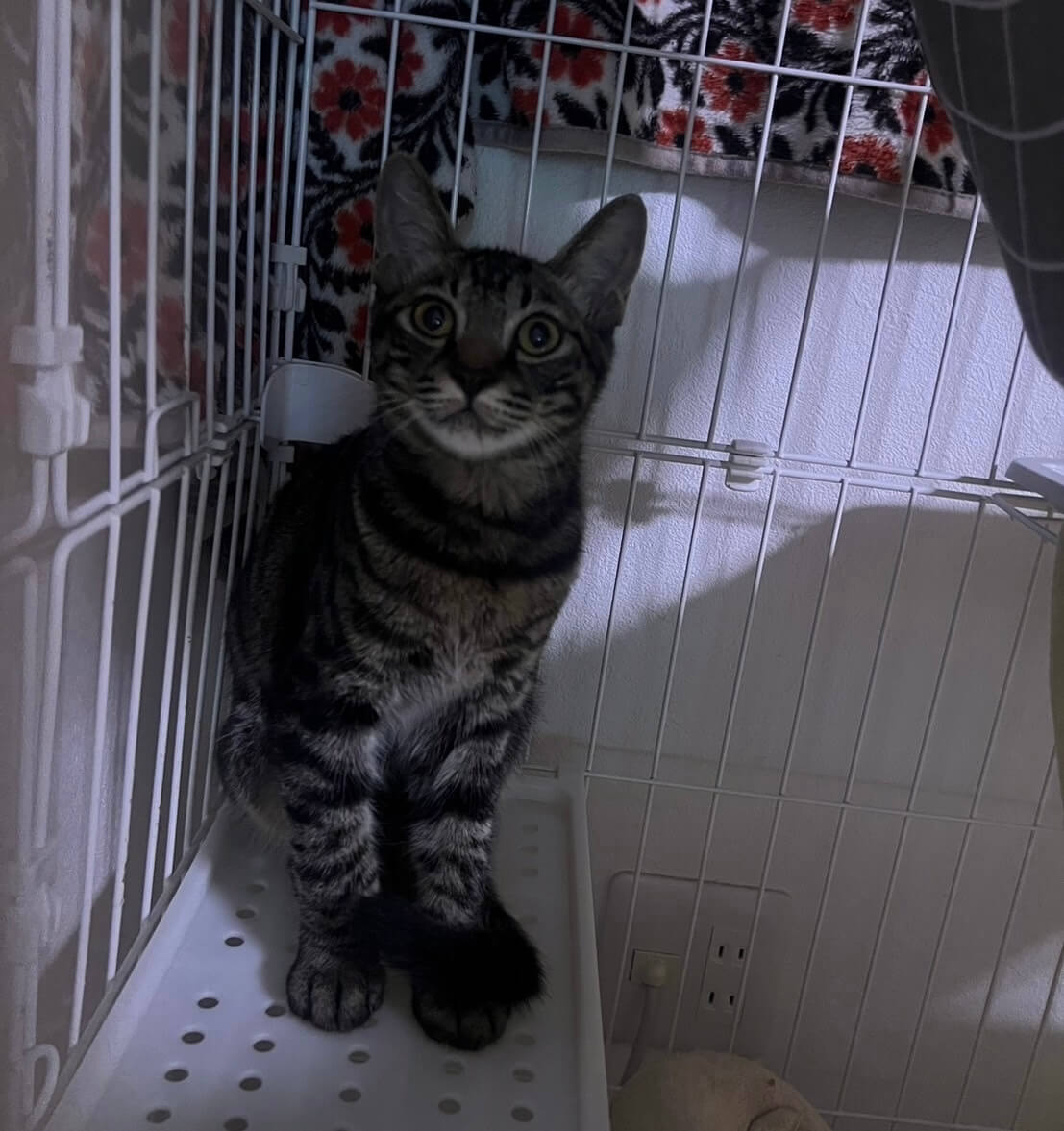 推定10ヶ月のキジトラの男の子です。ナデナデ大好きでゴロゴロの甘えん坊です。とても綺麗なキジ模様で誰が見てもカッコいい&可愛いです。一緒に保護している妹ロビン(サビ三毛)と仲良しなので、一緒に迎えてくださる里親様を希望します。