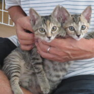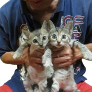 「物置に猫の赤ちゃんがいて1日経過しても母猫が迎えに来ない」と住民からのSOSがありました。低体温で衰弱した赤ちゃん猫をお預かりして一所懸命に育てましたが、3匹のうち1匹は発育不良で生かすことができませんでした。生き残ったミク・ミルは順調に成長しました。