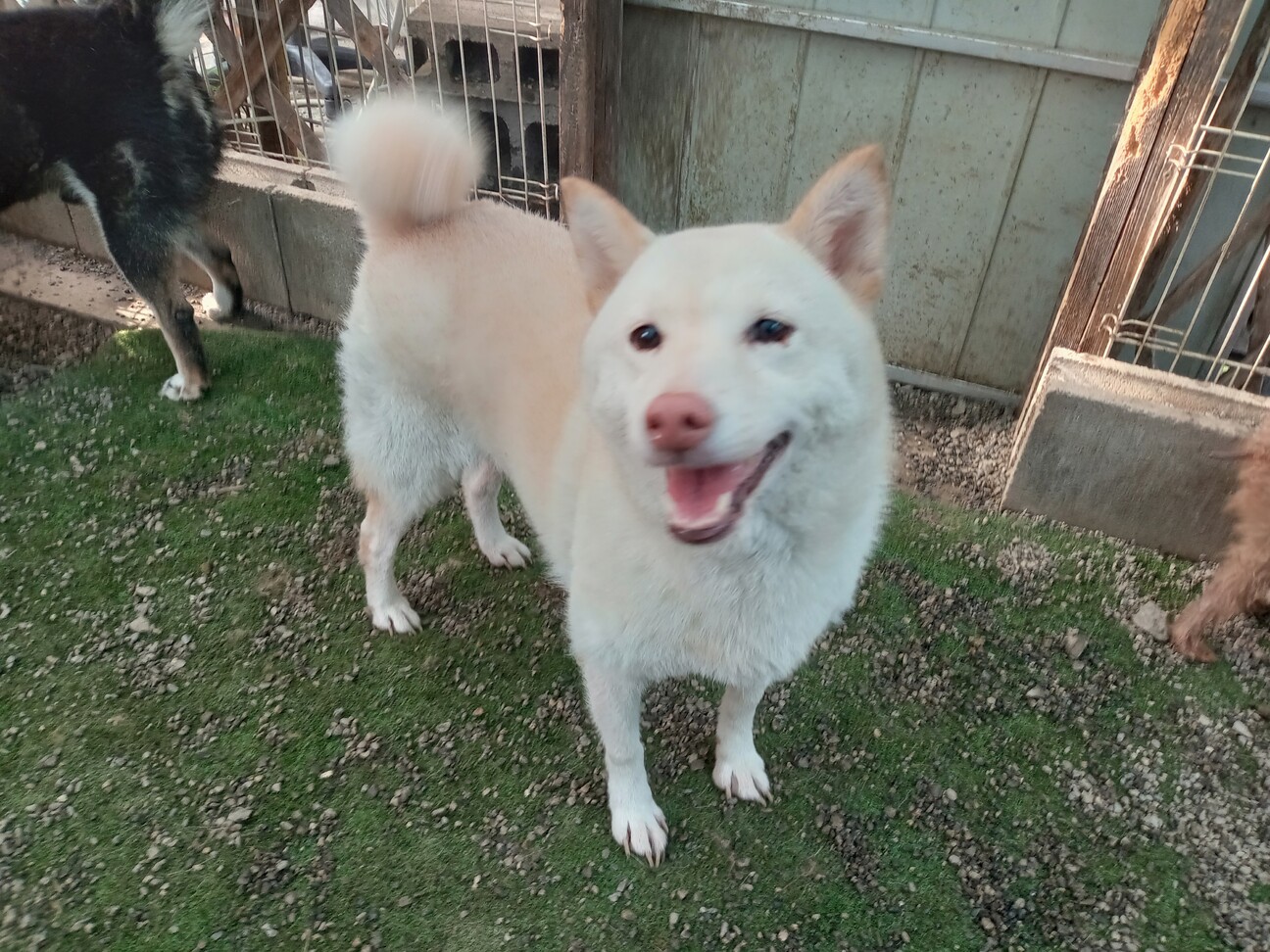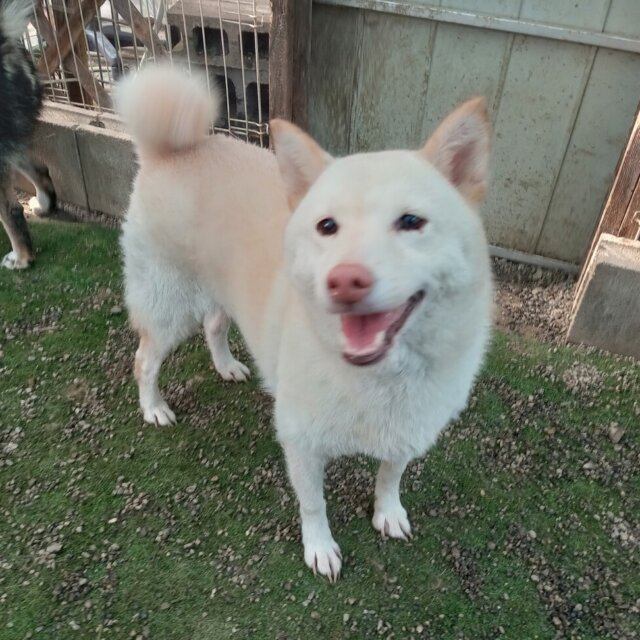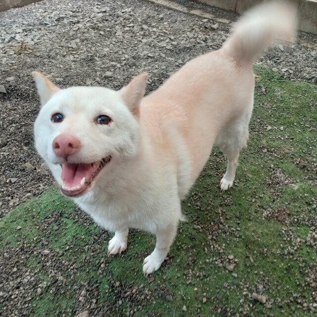 白柴ですが、若干黄味がかかっていてクリーム色に見えます。