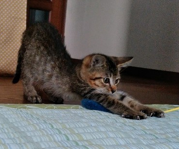 とても人懐こく甘えん坊。すぐ膝の上に乗ってきます。遊ぶのも大好き!1日中走り回っています。