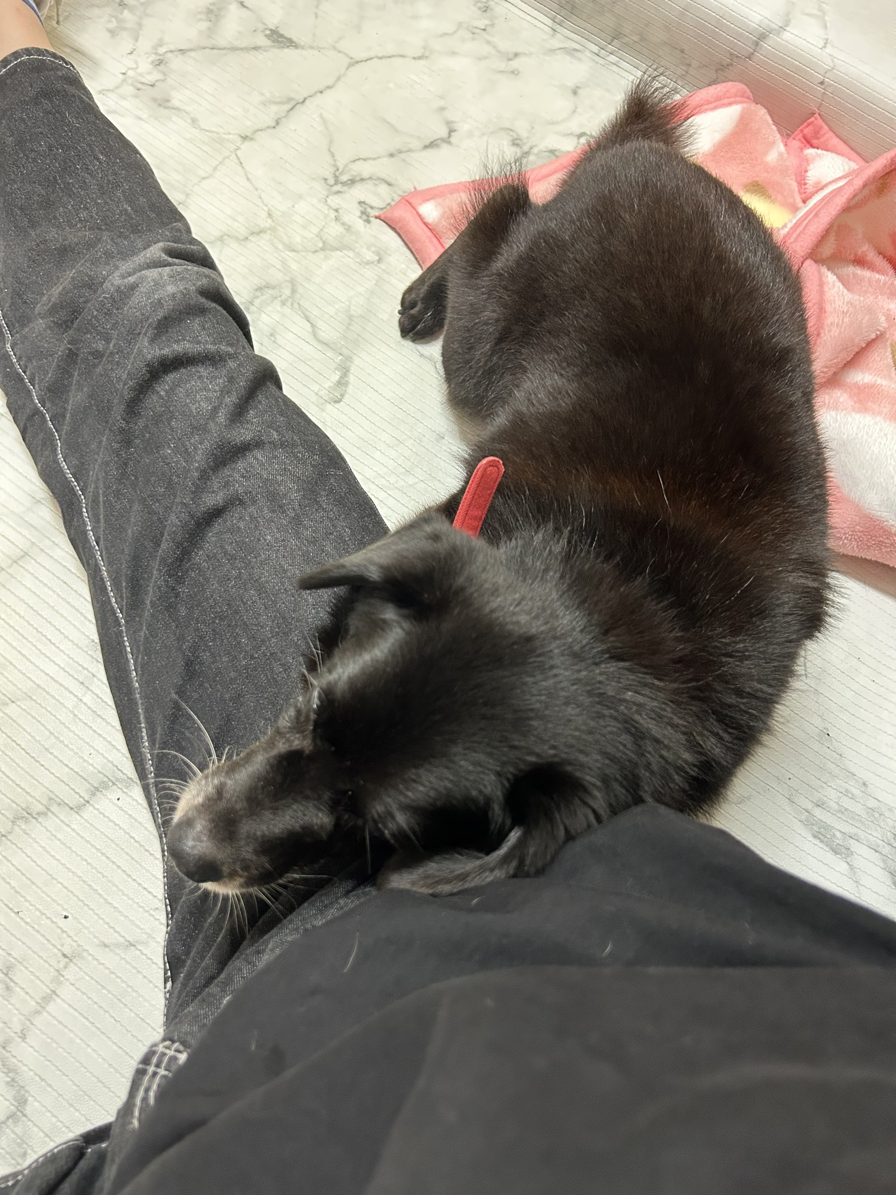 →撫でるときやリードの付け外しはゆっくり、アッキーの様子を見ながら行ってください。