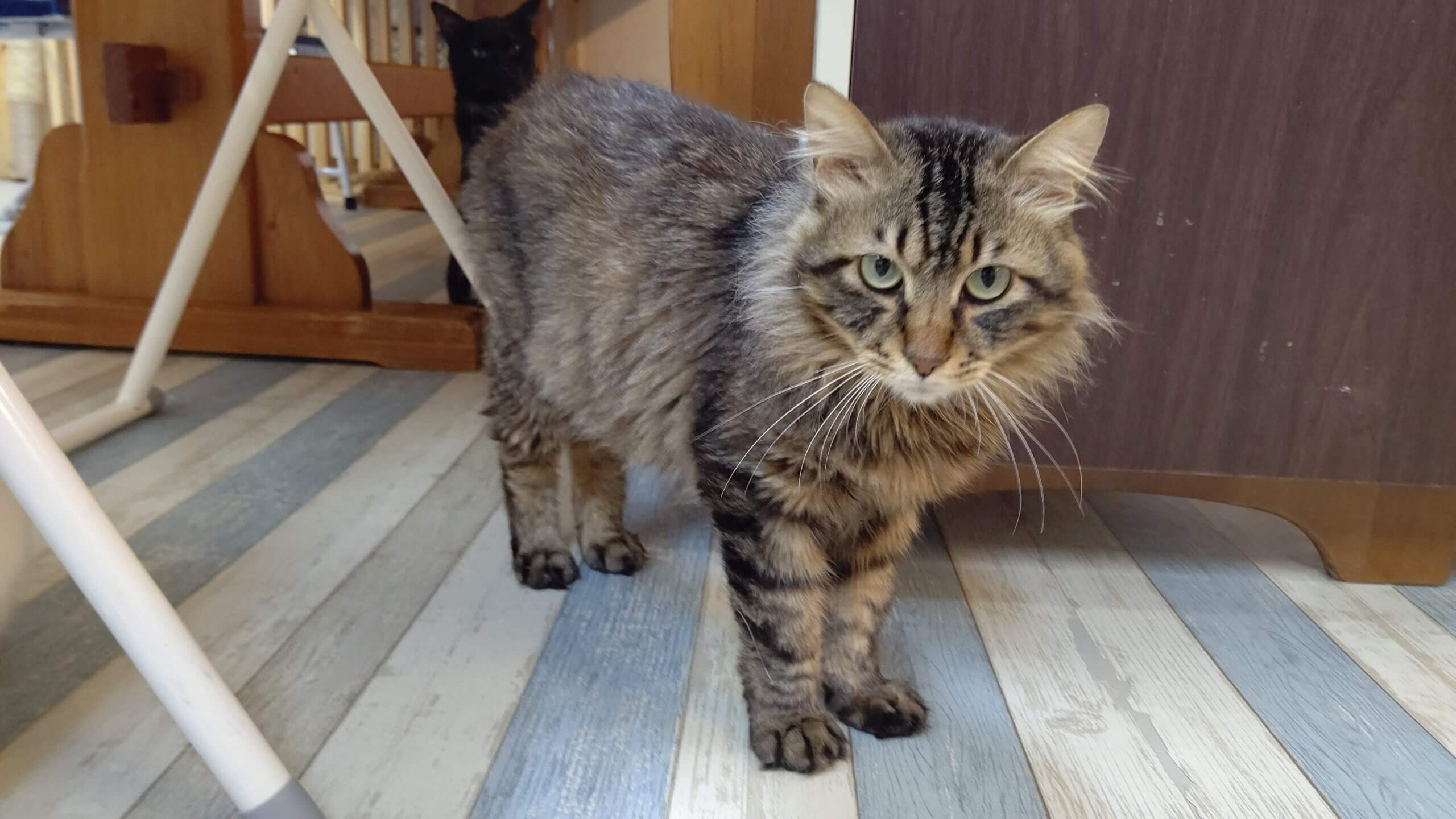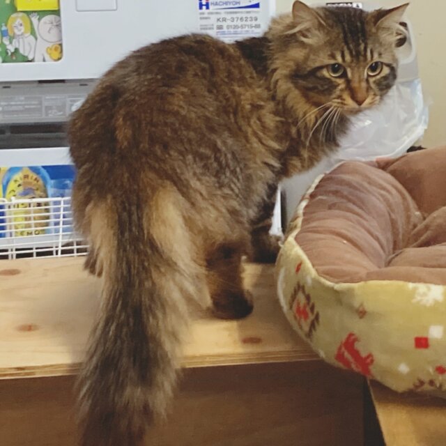 まだ新しい環境になれておらずキャットタワー内で隠れて過ごしていることが多いこわがりさん。