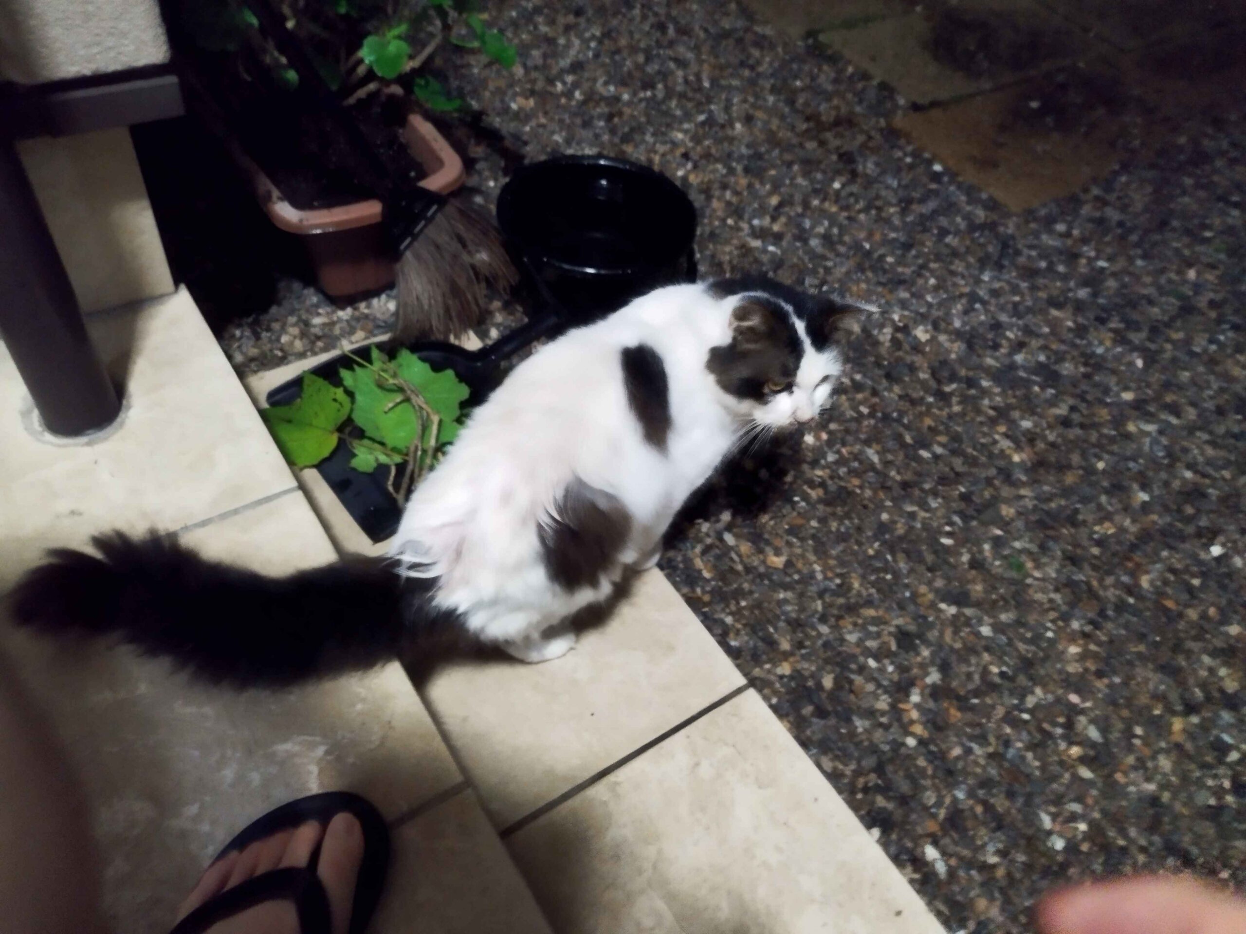 人間から餌をもらっていた猫が迷いこんで来てしまったのではないかと考えています。