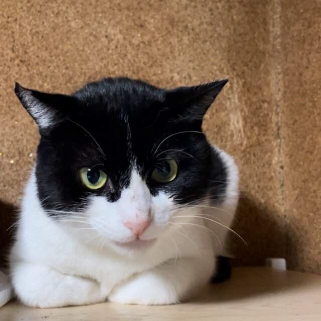 1歳半丸顔白黒ハチワレボーイ