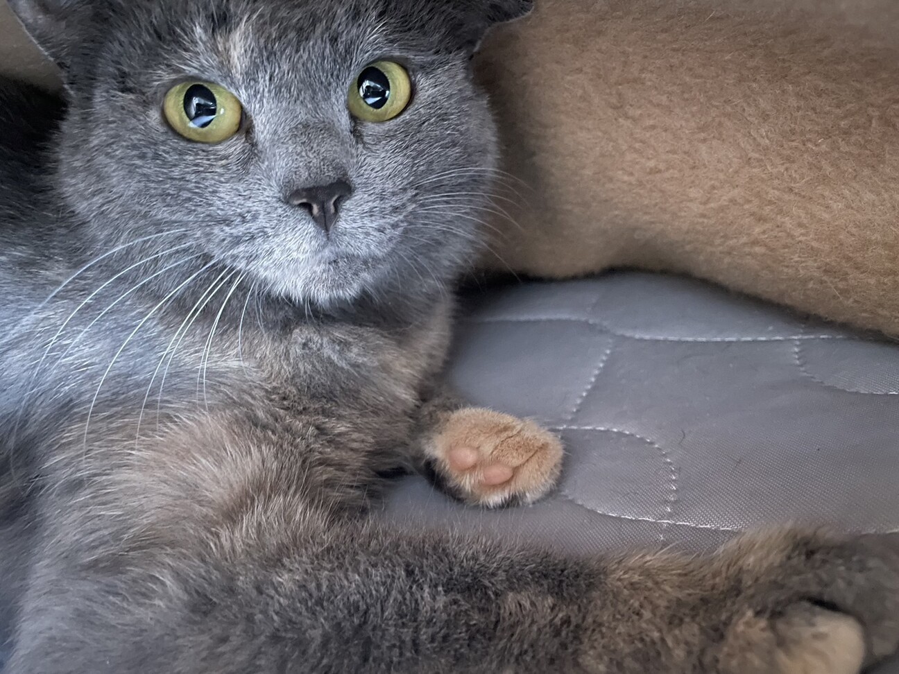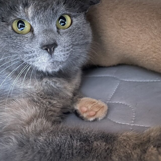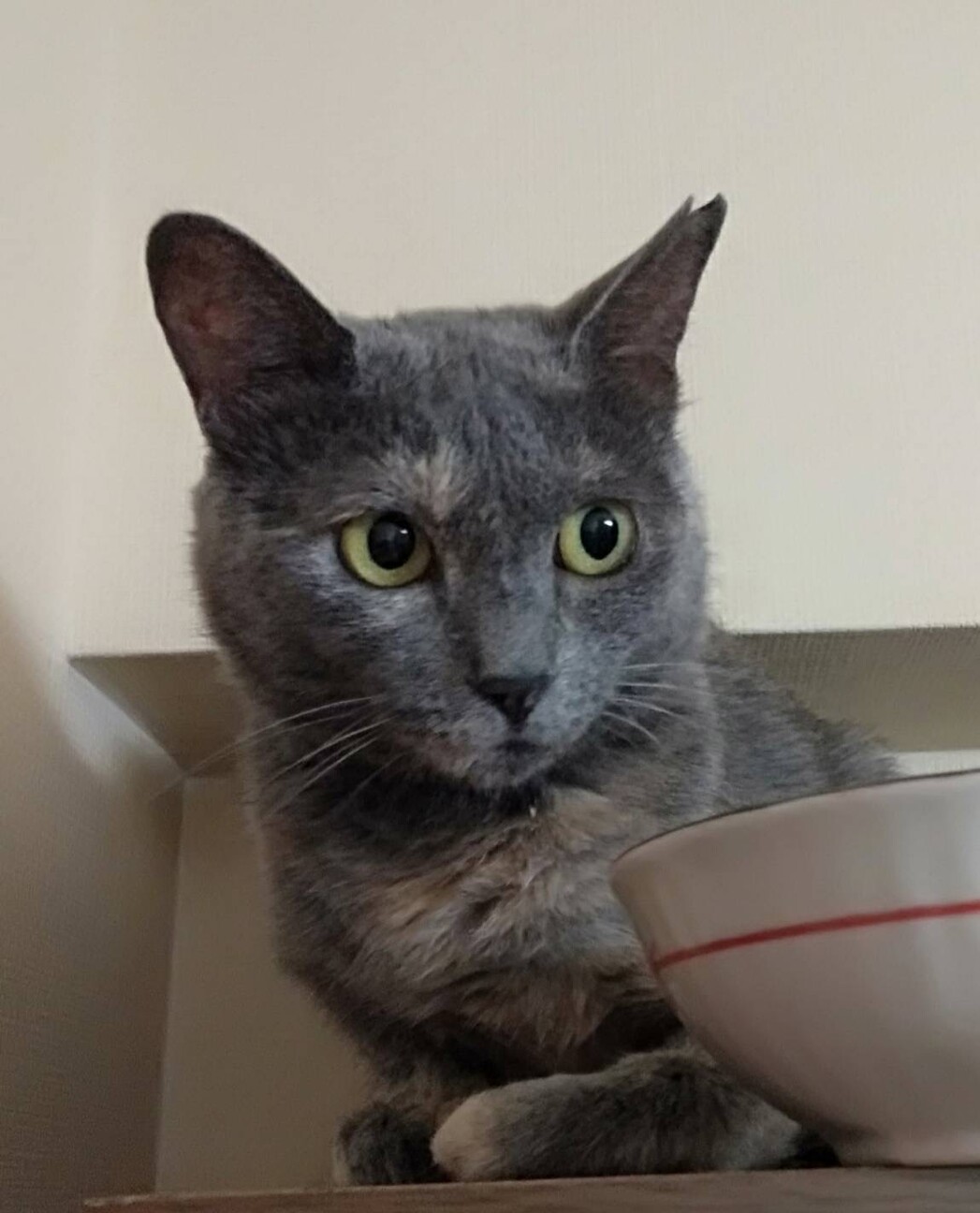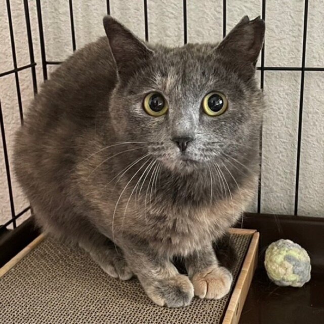 毛色はパステルサビ。預かりボランティアさんが命名。