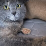 攻撃性はないものの、とにかくビビり。人慣れは時間が掛かりそうな子とのこと。薬と療養食のお陰で、その後の尿検査は異常なし。