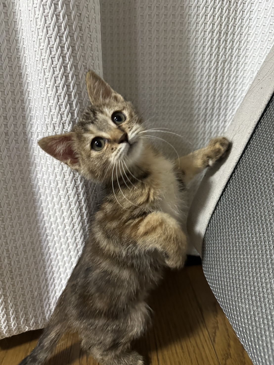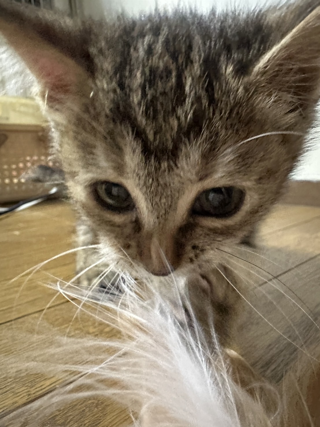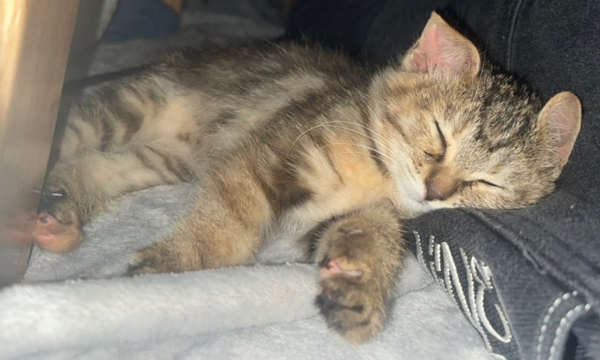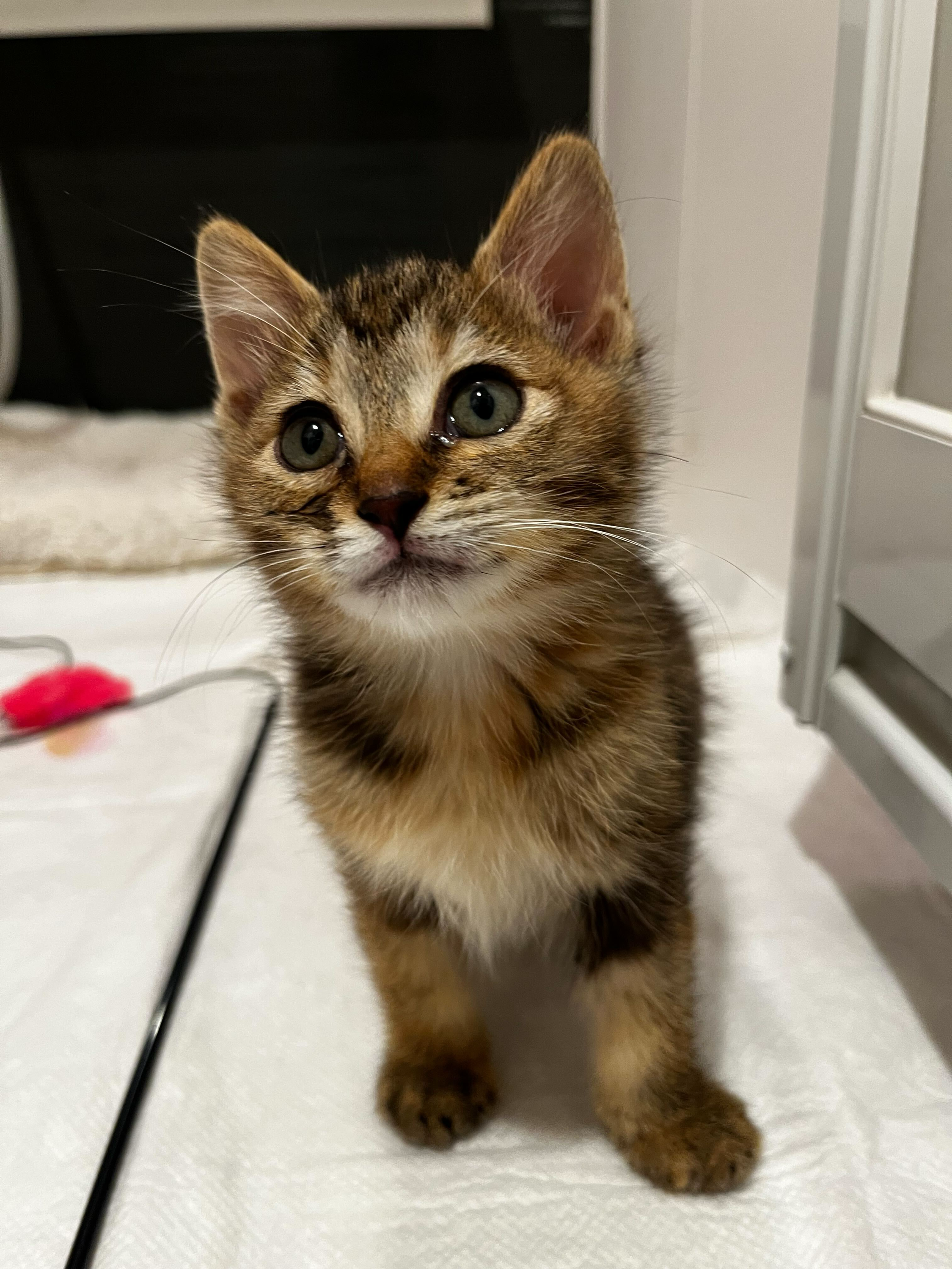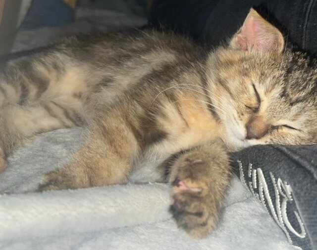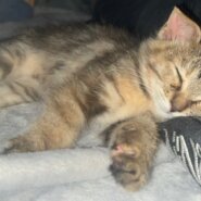 野外で1匹で段ボールに入っていて、他の大人猫にいじめられて、保護主さんにヨチヨチ近寄って来るのを繰り返していた為、保護しました。