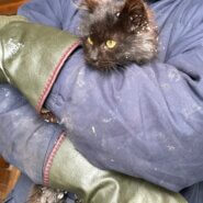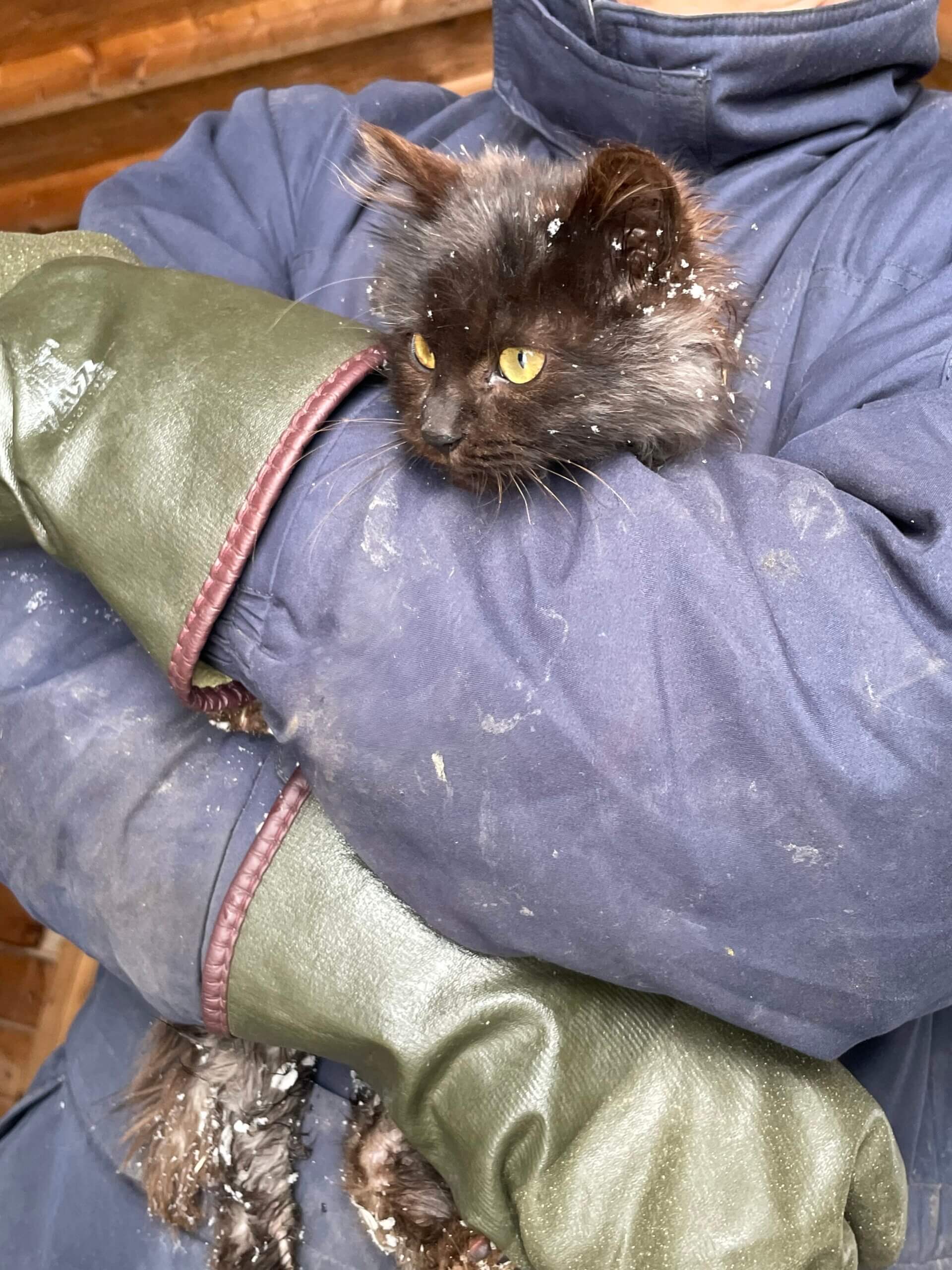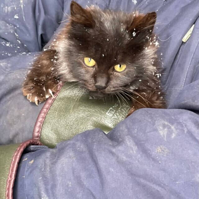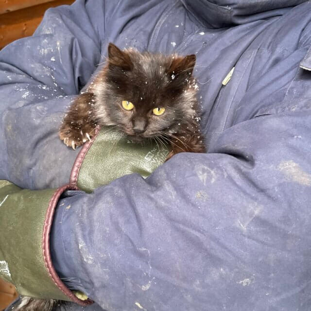牧場の牛舎内で生まれたのでずっと外猫ですが、人慣れしており触らせてくれます。