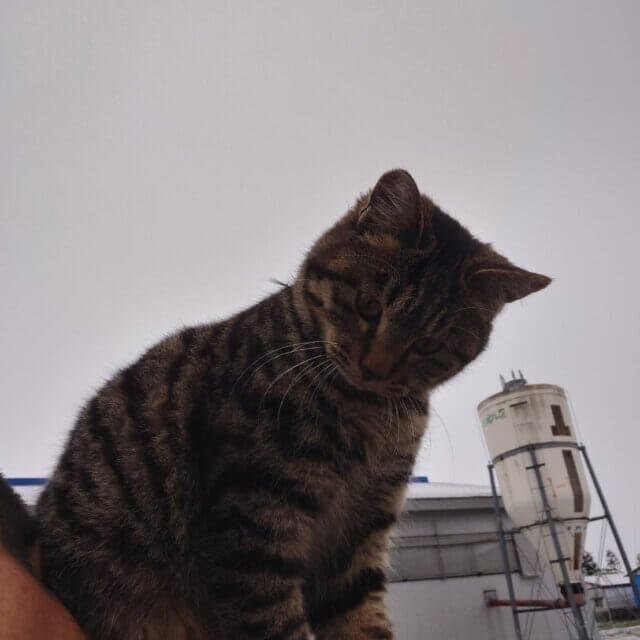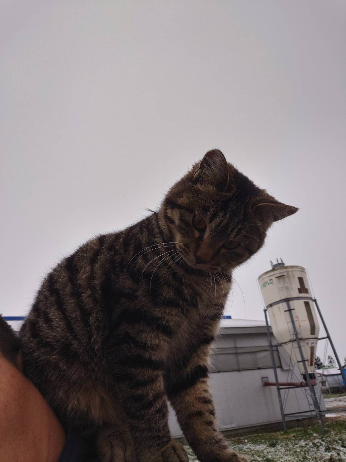 牧場の牛舎内で生まれたのでずっと外猫ですが、人慣れしており触らせてくれます。