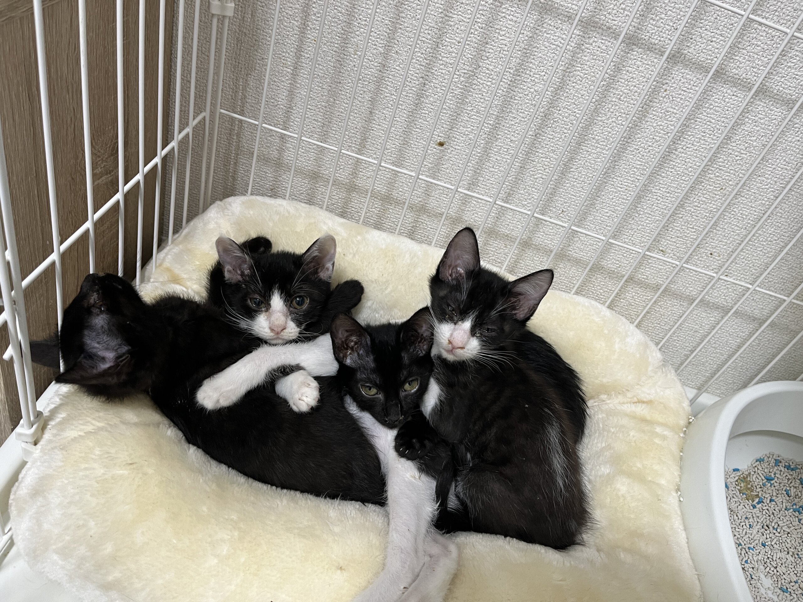 家族の中には、子猫たちをいじめる成猫もおり、子猫たちの命を守るために保護することになりました。里親募集中の「ガロ」「シナ」「マニ」ときょうだいです。