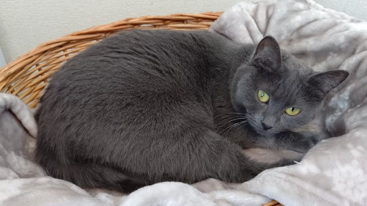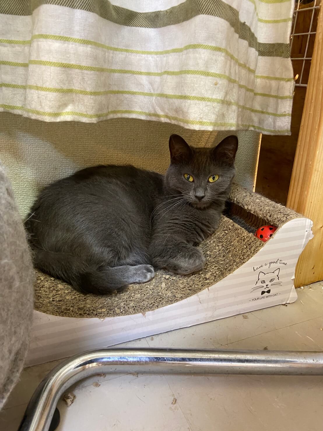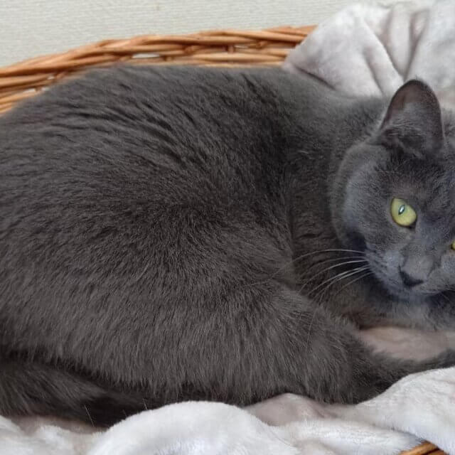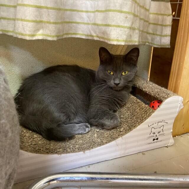 グレーの毛並みが綺麗なロビンちゃんは食べるのも遊ぶのも大好き!