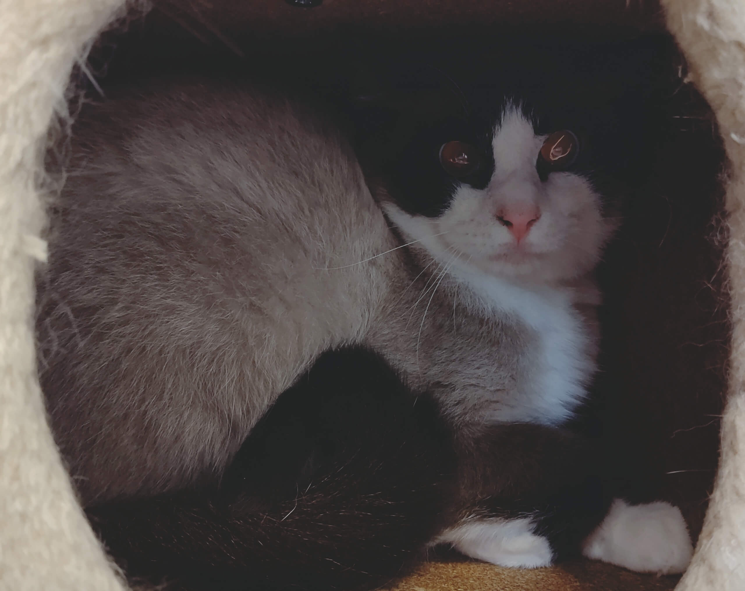 こわがりでおとなしめなパンくんですが、さわることも抱っこすることもできます。