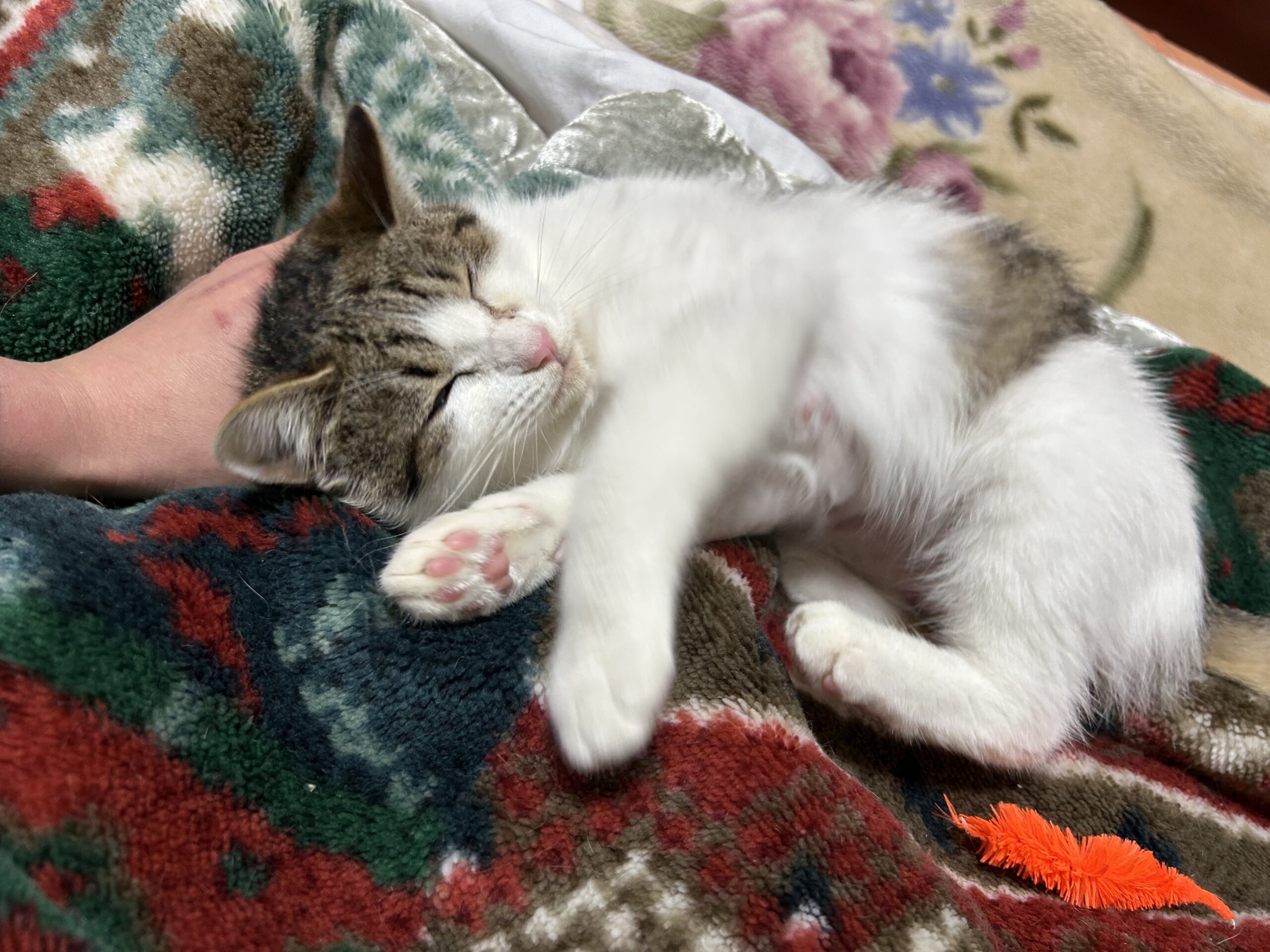 しかし家には先住猫1匹、保護猫5匹います。家族と話し合いした結果、これ以上の多頭飼育はできないという結論になり、里親さんを募集いたします。