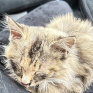 柄はサビ猫で、長毛猫ちゃんだと思います!