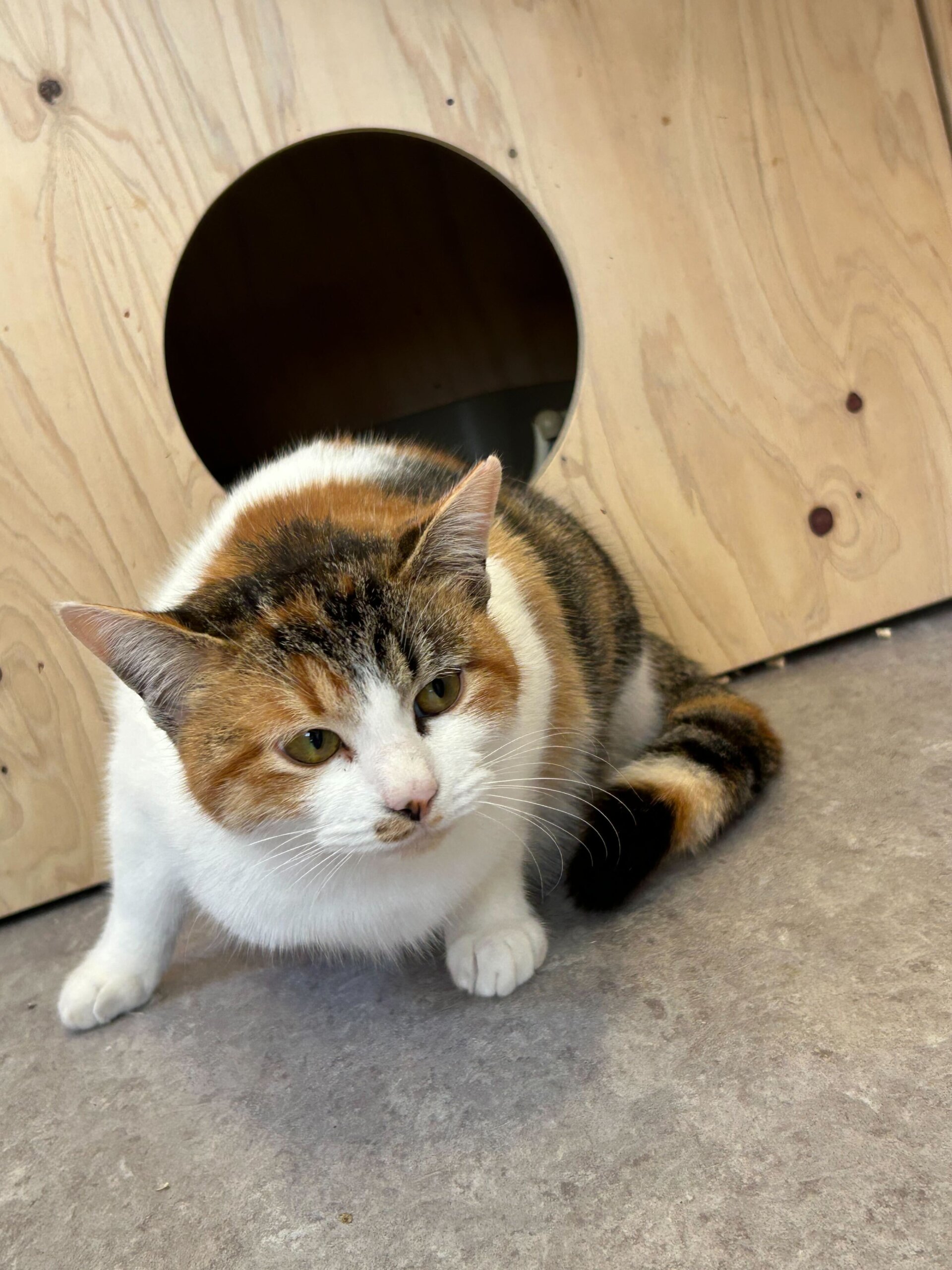 スタッフが掃除をしているを邪魔してきて抱っこをせがんできます笑