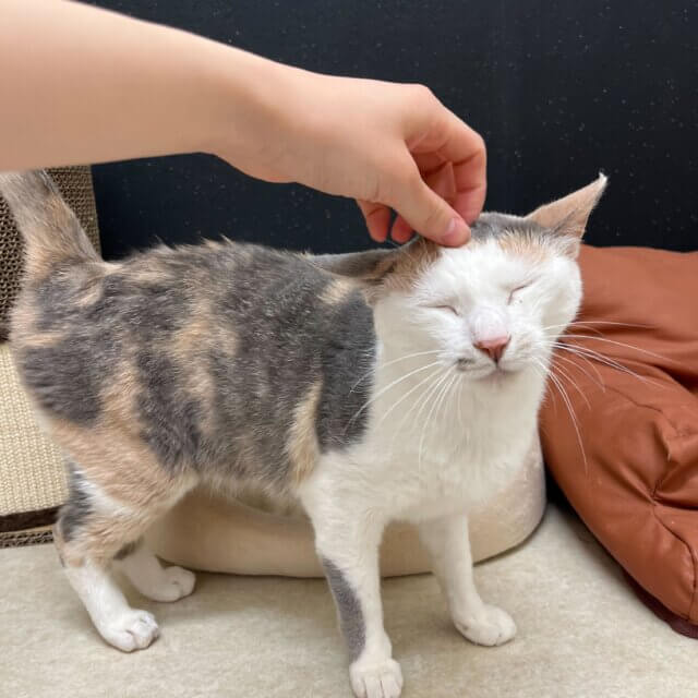 初めての人にもなでなでをせがんで手に頭突きしてきちゃいます。