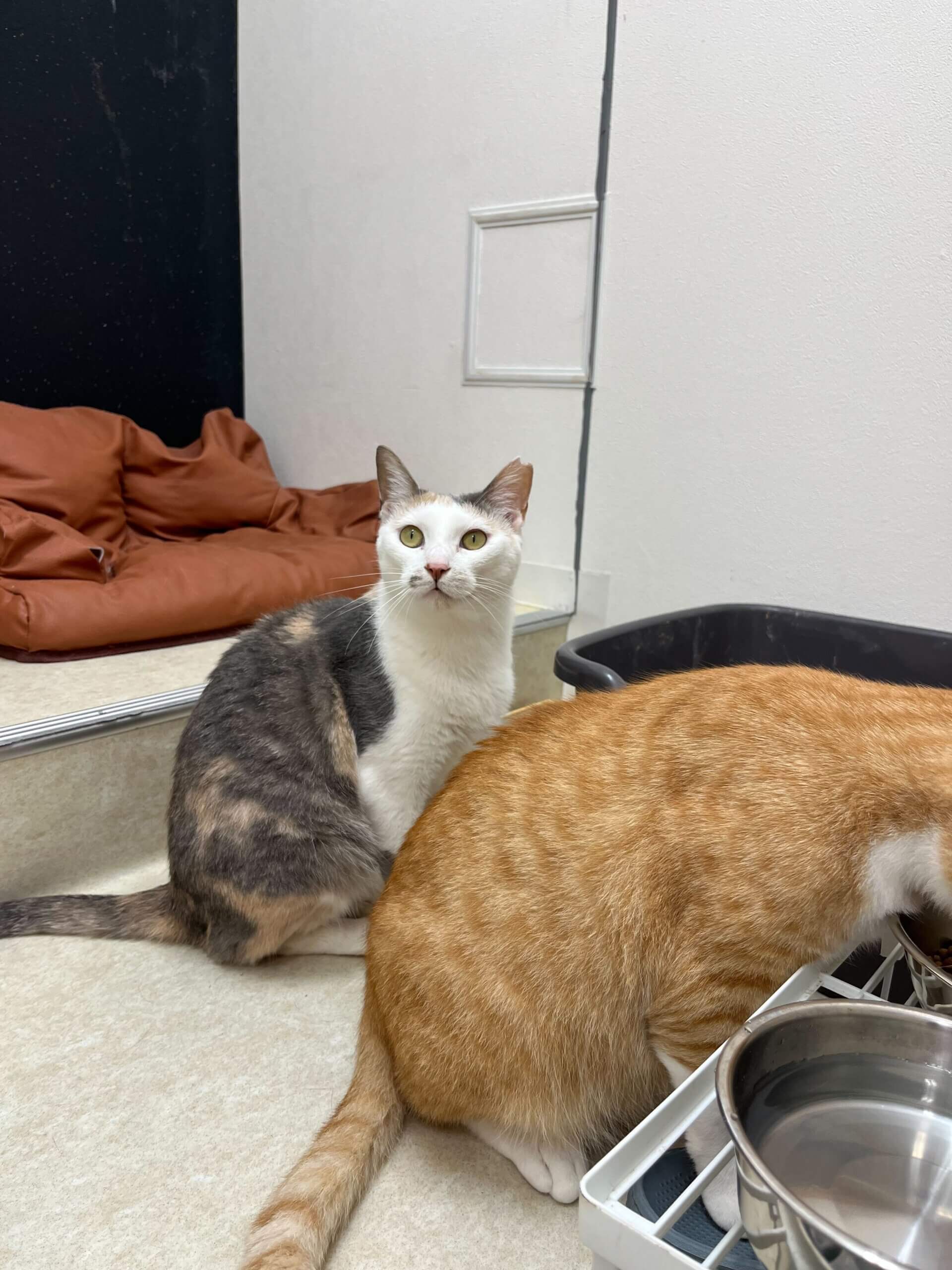 薄い三毛、尻尾がすらっと長くてかわいいです😍