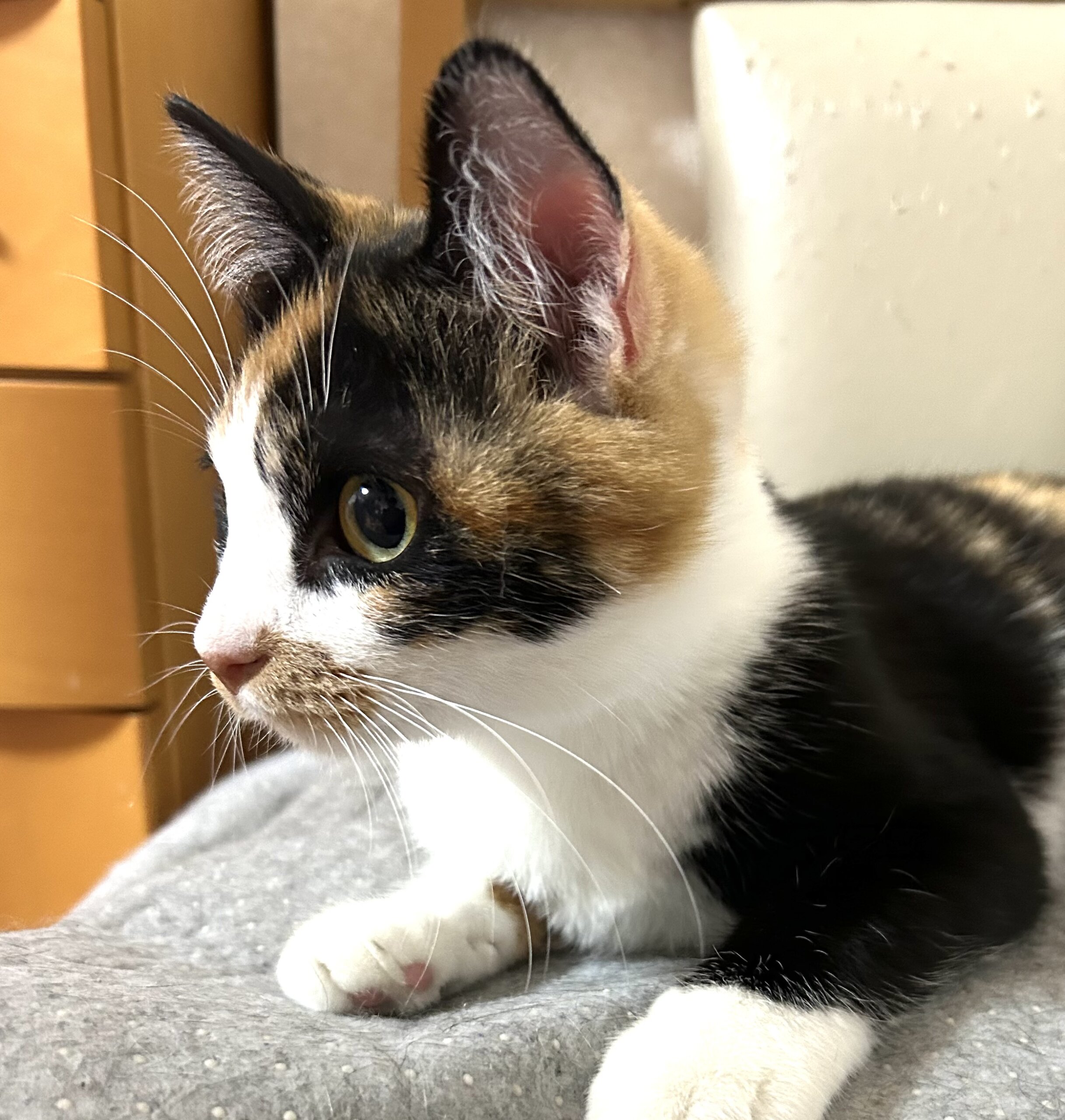 当初真菌猫風邪も酷く治るまで3ヶ月様子をみていましたら、昨年の10月にF I P発症治療を行い、寛解し避妊手術も無事終わり元気になりましたので、この子を受け入れていただける方を探しています。
