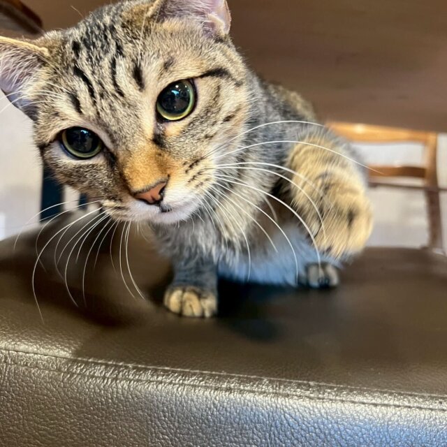 キジトラ、短いしっぽがぷりぷりしてかわいいです😍