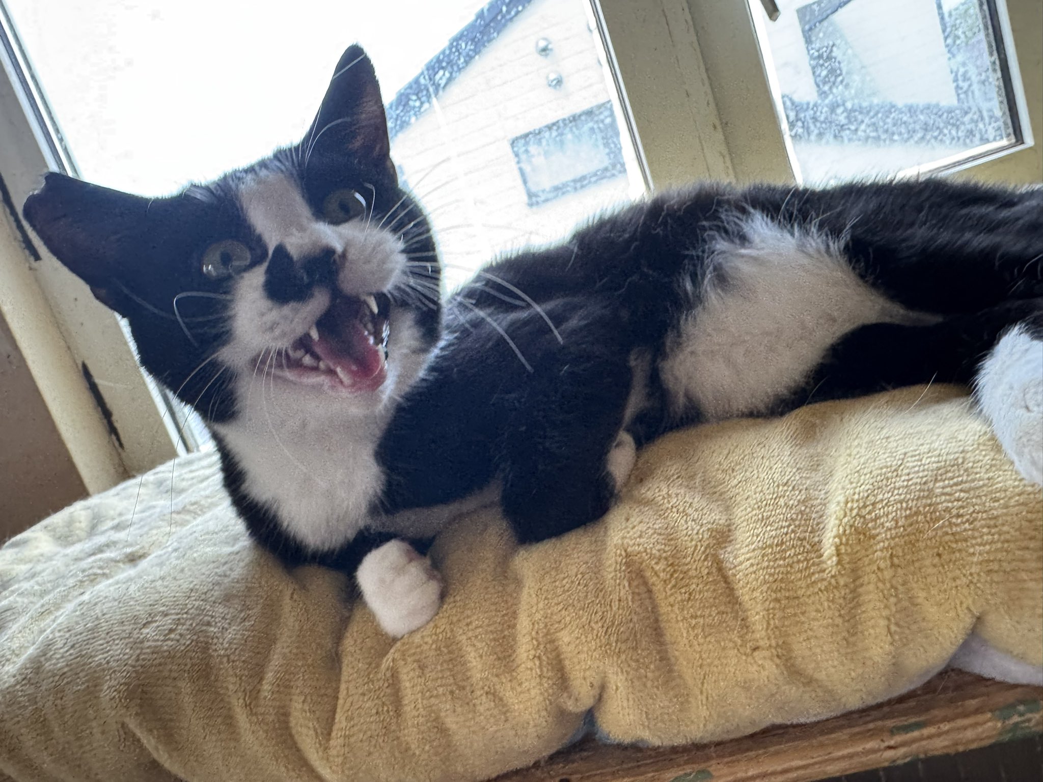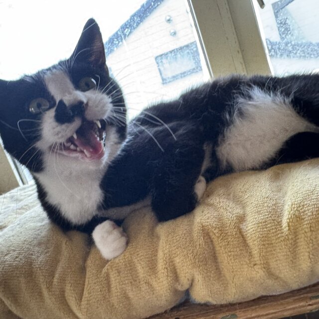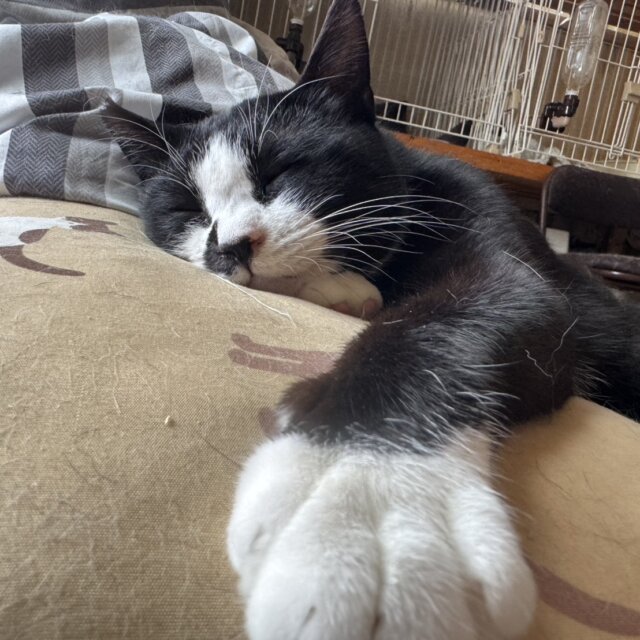 黒白のくっきりハチワレと、お鼻の脇にはみ出たブラックが超絶可愛い・・・
