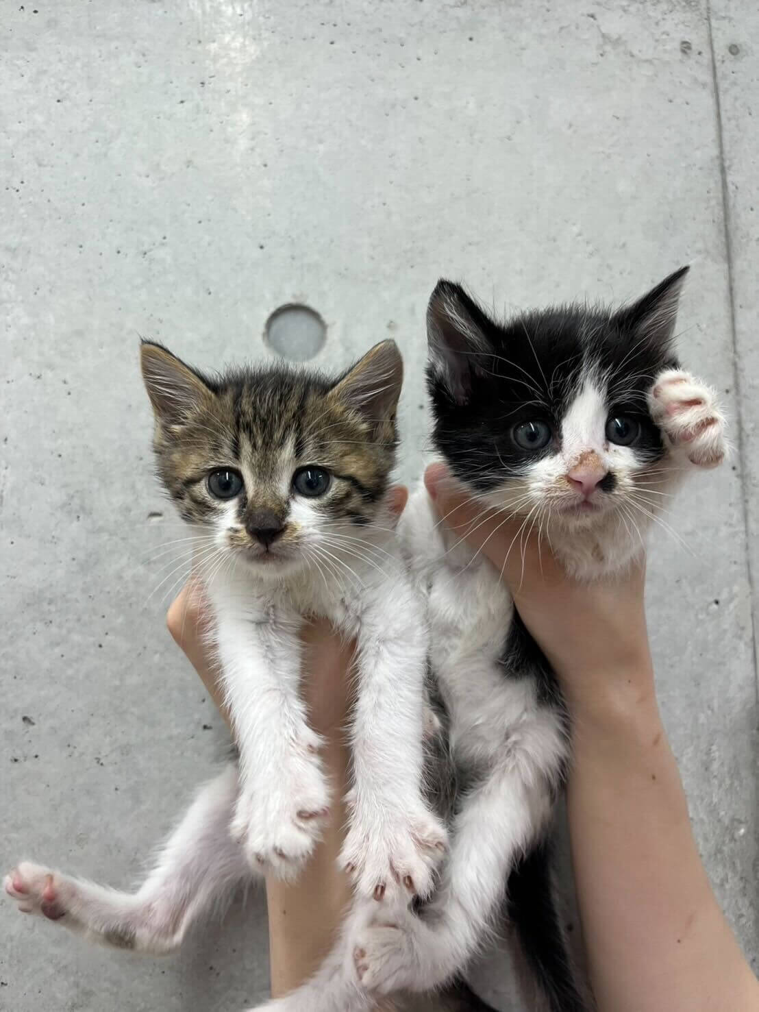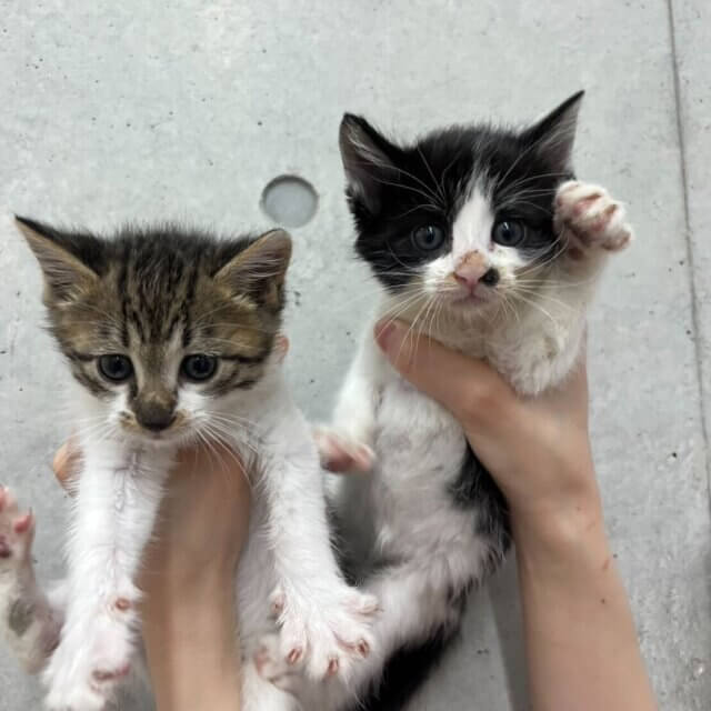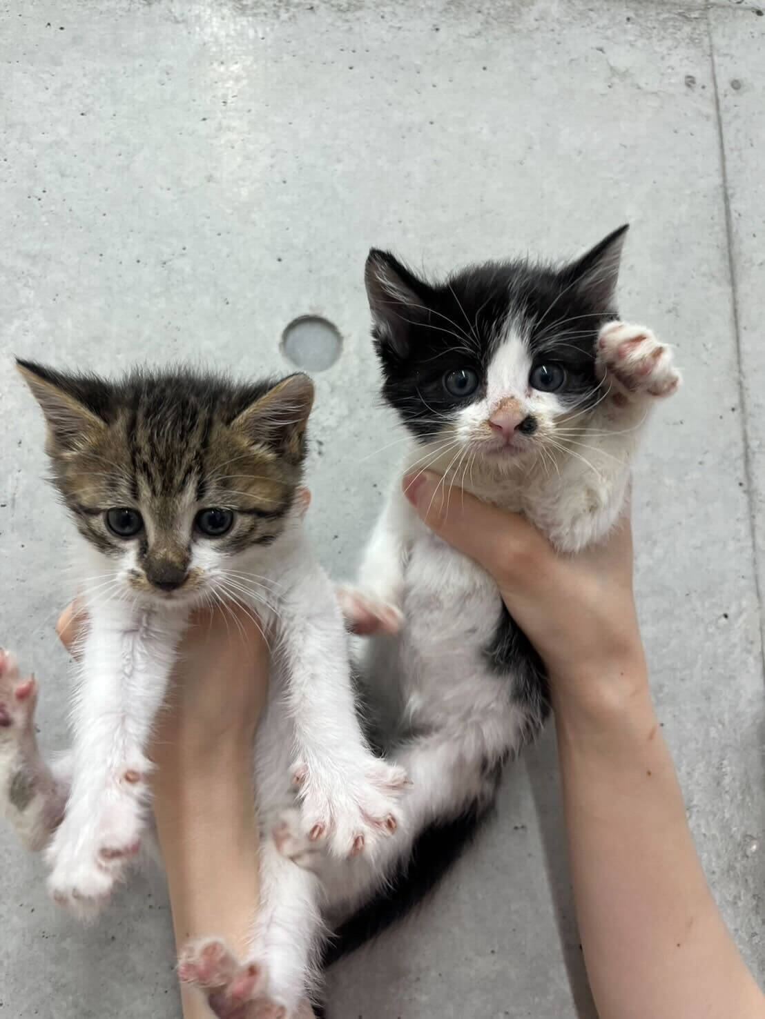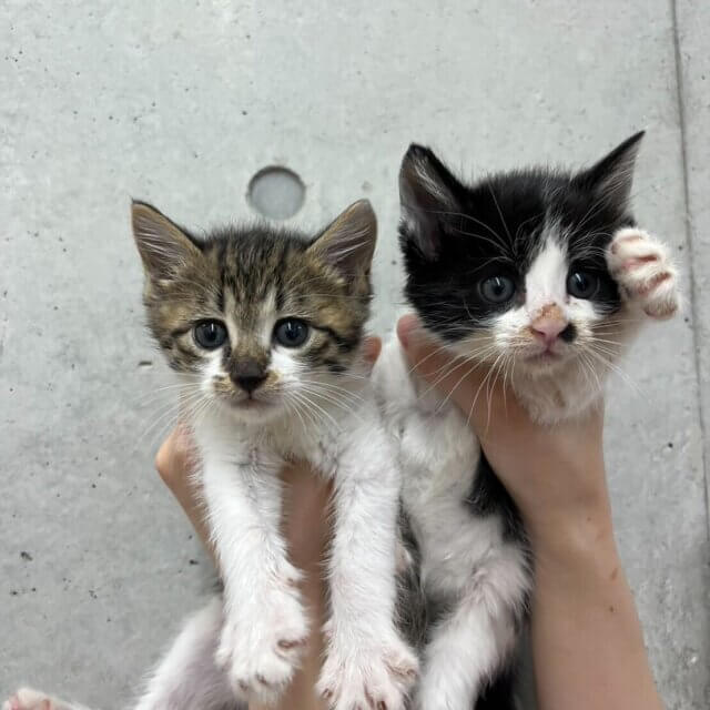2匹一緒にねこの森に来てミルク、離乳食期を経て現在は子猫用フードを食べてすくすく成長中です!