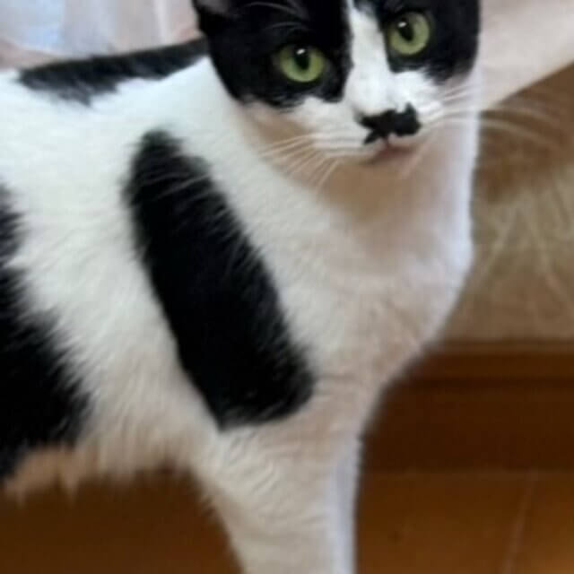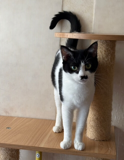 とても大人しく穏やかですが、運動能力が高めで、高い所も登って行き高い所で過ごしていることが多いです。降りる時はてっぺんから降ります。撫でると可愛い声で「ぎゃ」っと鳴いて撫でて~っと頭をスリスリしてきます。ご飯の時間の時は私の足元をスリスリ歩くので転びそうになりますが、そこも可愛いです。本当に性格花丸女子です。