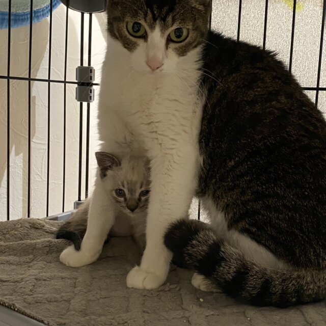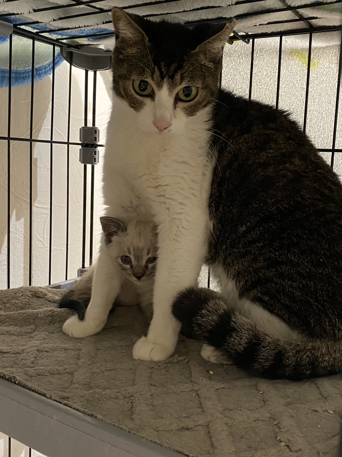 若い母猫で、これまでは子どもを守るのに必死でした。このため、人に対する警戒心をまだ完全に解くことができません。けれども、子どもといる時は普通の優しいお母さんでした。