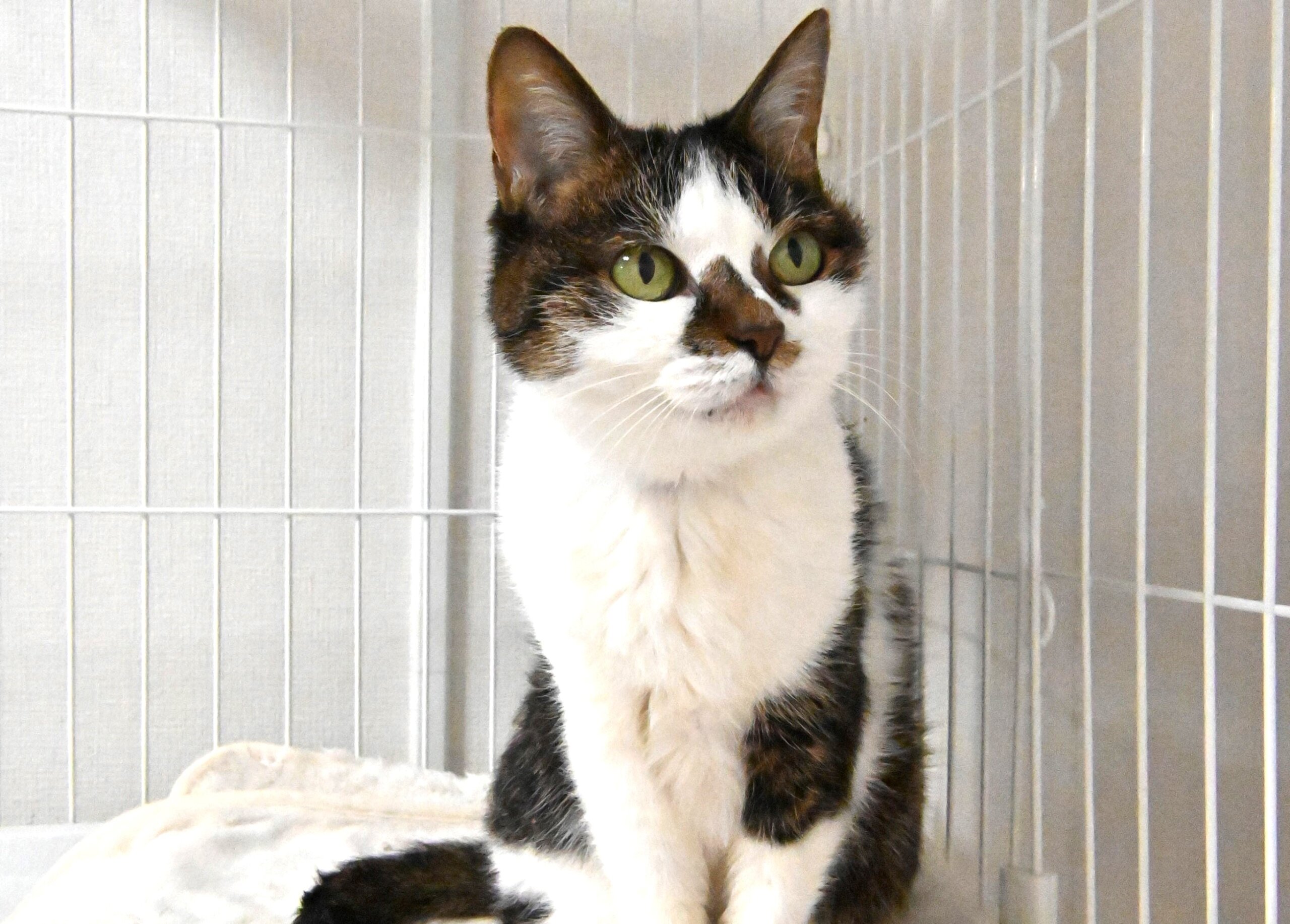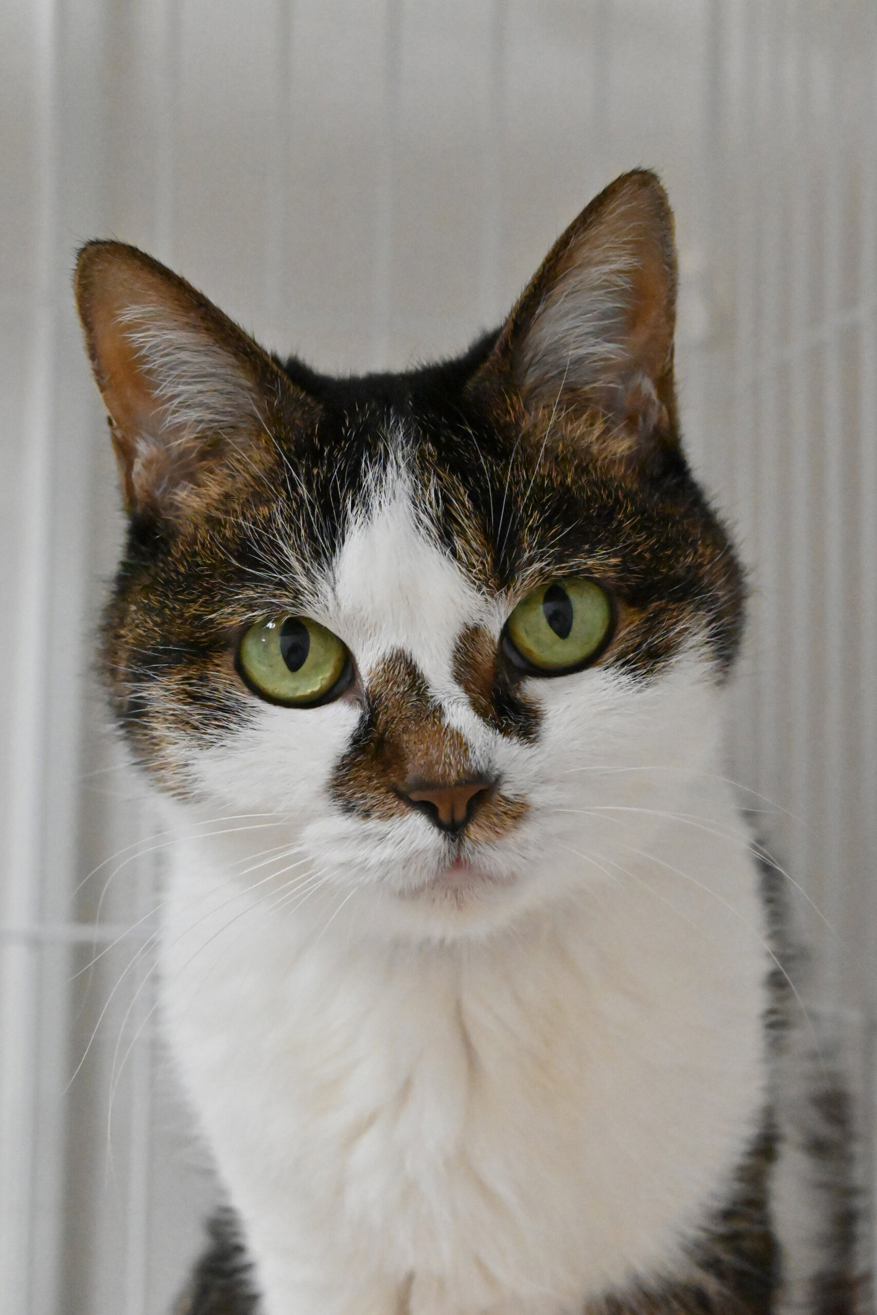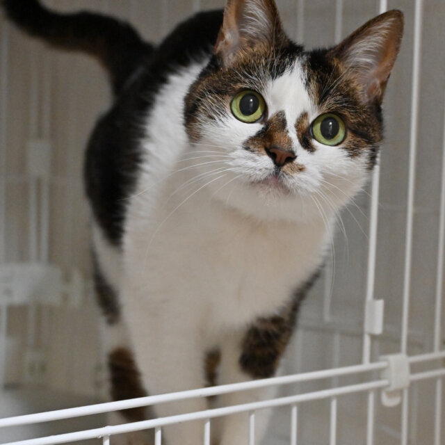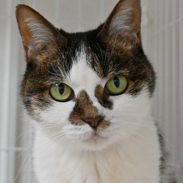 日がな一日まったり過ごすのが好きなよもぎ。つぶらな瞳の愛らしいおばあちゃん猫です。