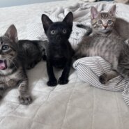母猫が戻ってこない為生後2週頃に兄妹3匹とともに保護しました