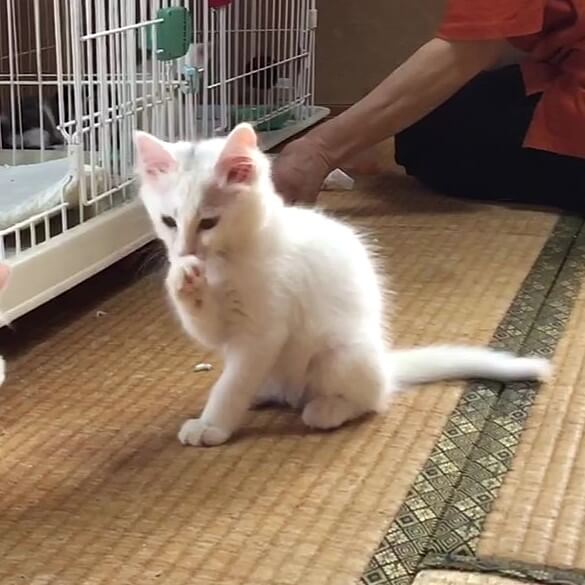 1匹は母猫と一緒にいることになりました白猫2匹も