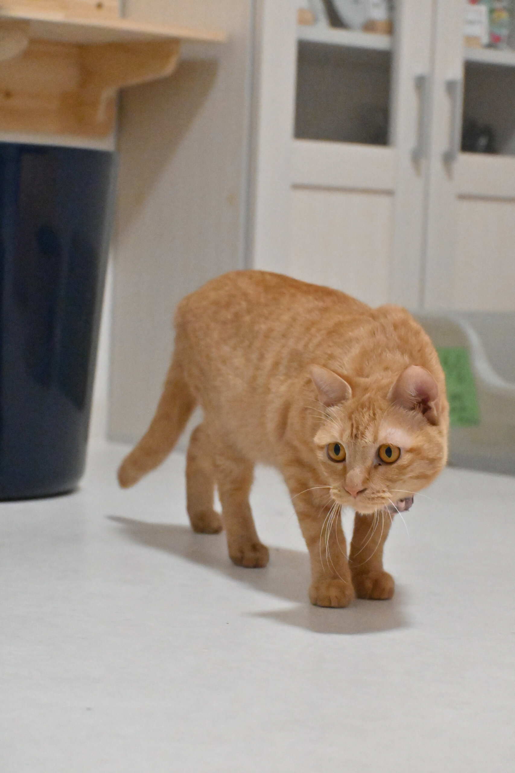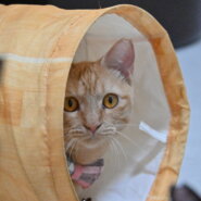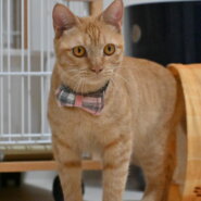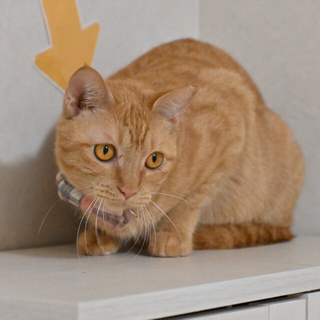 ほかの猫の後ろに隠れていることが多くちょっと臆病ですが、決して内気で引っ込み思案なのではありません。おもちゃを出して誘ってみると、途端に別人のような活発な姿を見せてくれる元気な子です。
