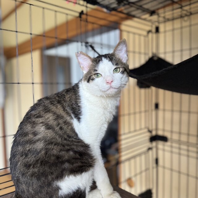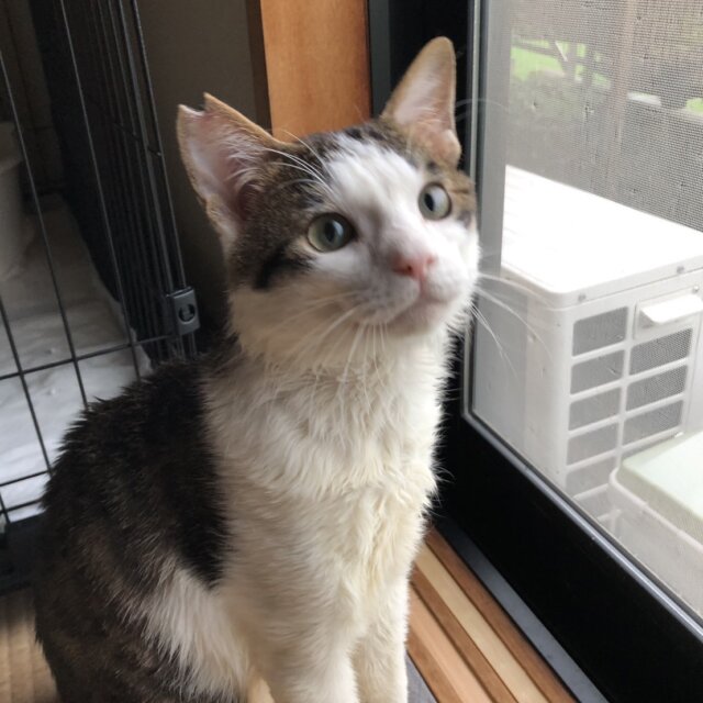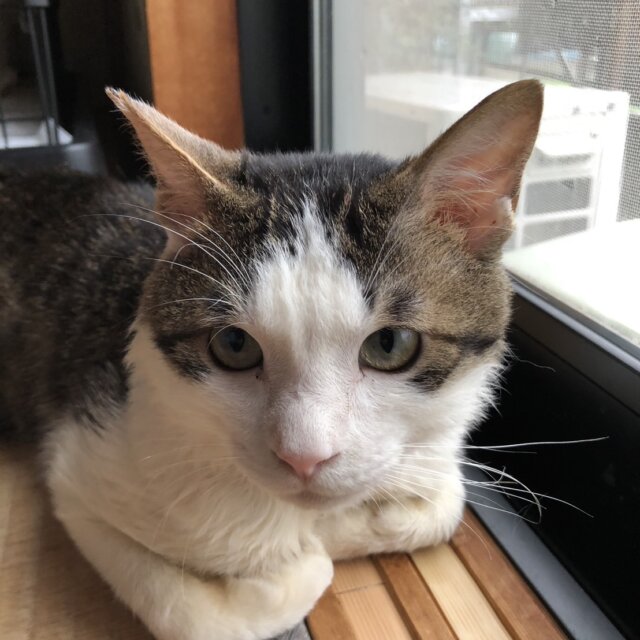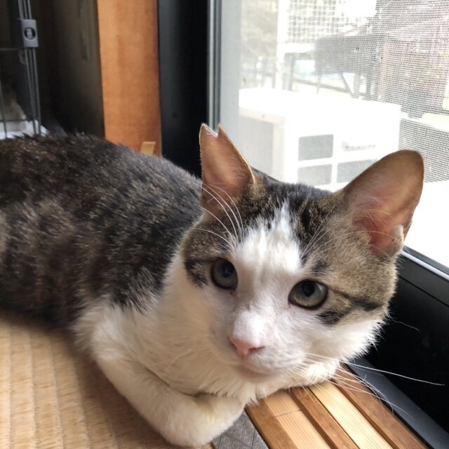動物病院にて、推定3~4歳くらいの、去勢済の白キジ君です。とても人なつっこくて甘えんぼ君で、おしゃべりも得意ですよ。保護当初から、人懐っこく、どなたにもすぐ慣れてくれると思います。外猫からおうちの中に入った幸せ者を、より幸せな猫生にしてあげてください。