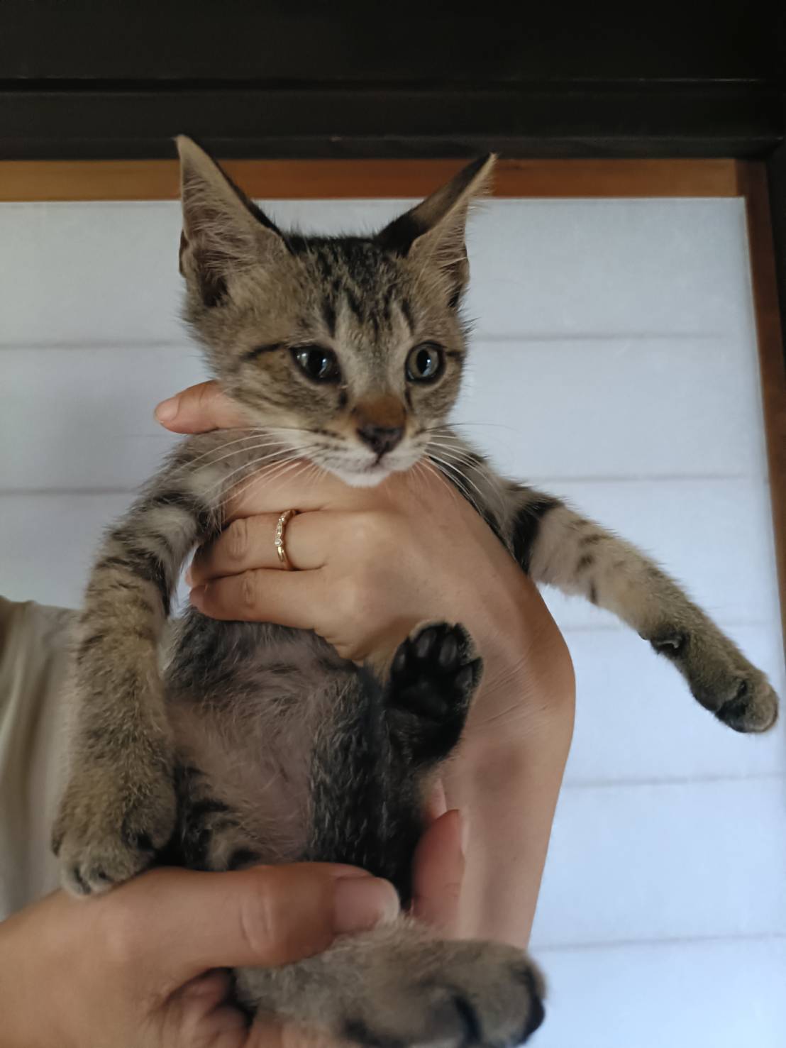 まだ保護したてなので写真ではうまく可愛さが伝わるかわかりませんが、とにかく無駄鳴きせず、人懐っこく、お利口さんです。