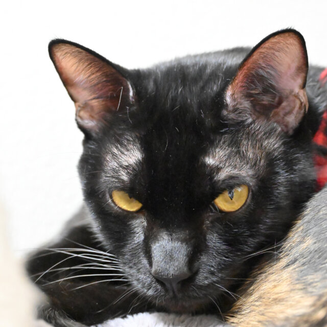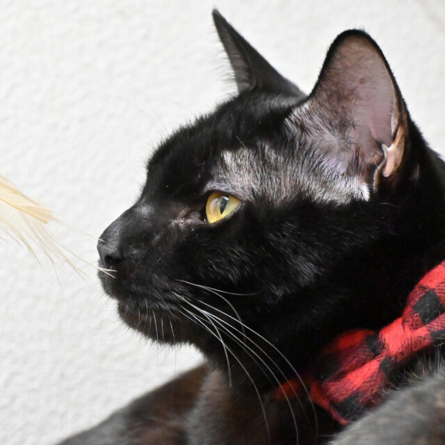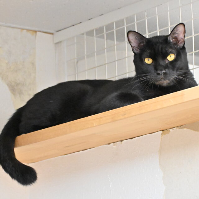 日中は一番高い場所でひたすら昼寝、夜になると悠然と下りてくるイケメンです。が、実は少しビビリ。本当はおやつも欲しいし、おもちゃでも遊びたいのですが、心を開くのが苦手なようです。