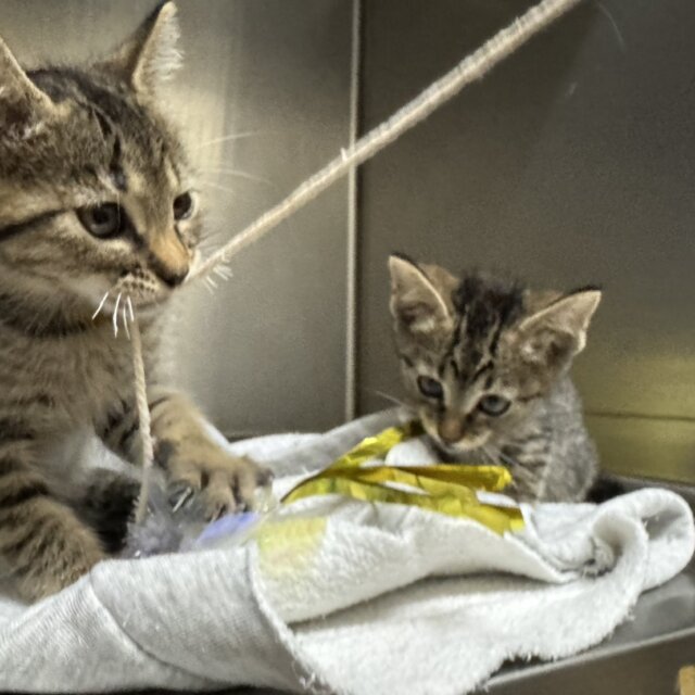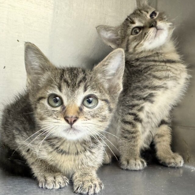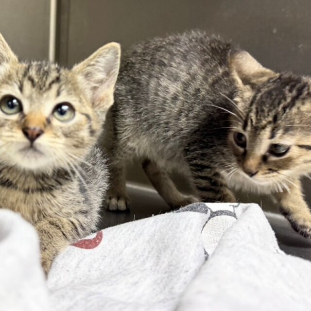 やんちゃそうなおめめがたまらないこのキュートボーイズは、生後2か月弱のキジトラ兄弟。