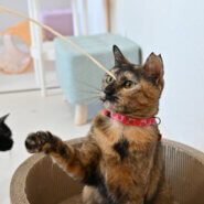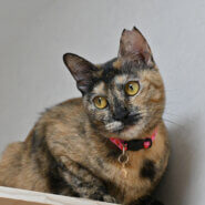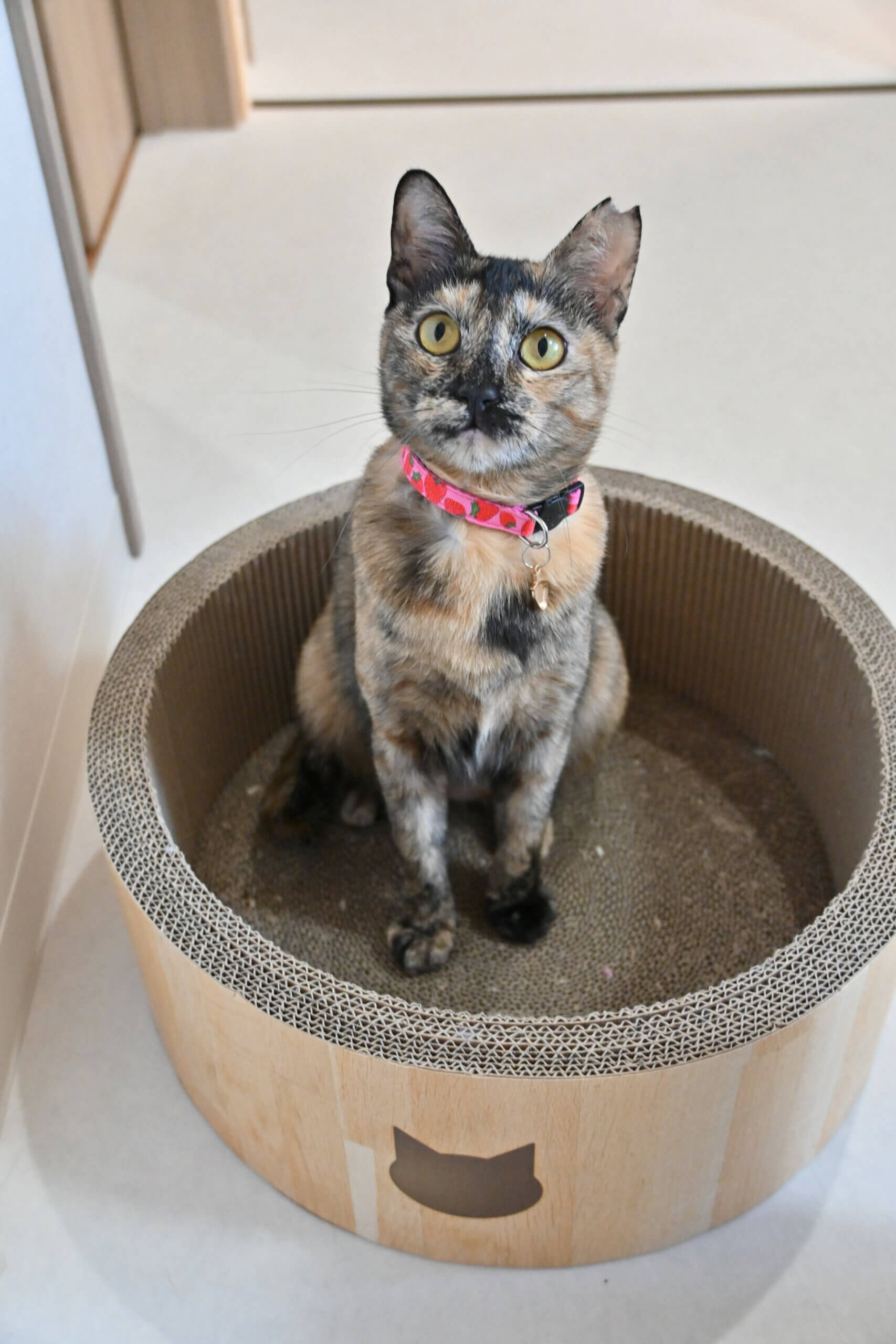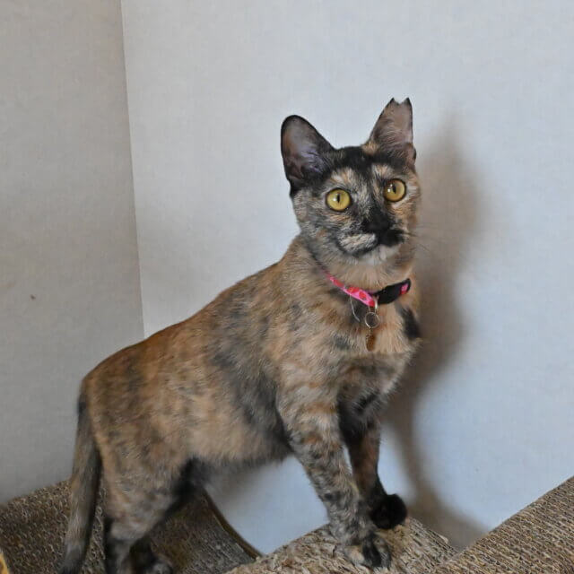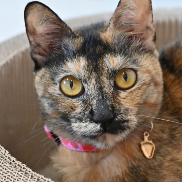 とにかく人間が大好き! 猫たちのことも好きだけれど、しつこくつきまとう子にはパンチが飛んだりします。ところが人の姿が見えるや否や、すかさず飛んできていちばん前を占拠。自分が誰よりもたくさん遊んでもらえるのが当たり前と固く信じているお姫様です。