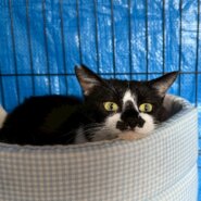 自宅敷地内にご飯を食べに来るようになりお世話してましたが、人馴れして来たので室内保護に切り替えました。