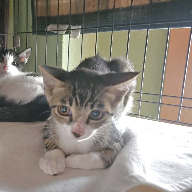まだ少し人を怖がる時もありますが、子猫なのですぐに馴れると思います。