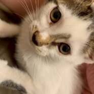 警戒心が強く、まだシャーシャーです。絶賛抱っこの練習中です!