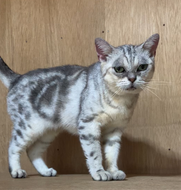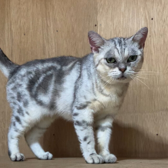 身体を長く伸ばしていつもくつろいでいます。近づくとお尻を高くあげて誘ってきます。特徴のあるお顔だちがとてもキュートです。