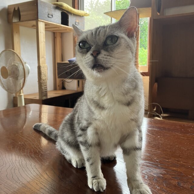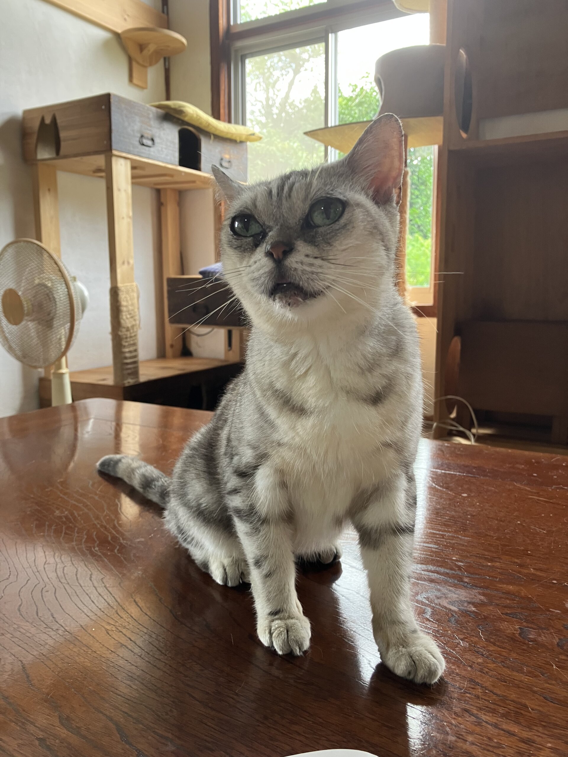 我が道を行くタイプの女の子です。他猫とはあまり友好的ではないですが、適度な距離感で過ごしています。