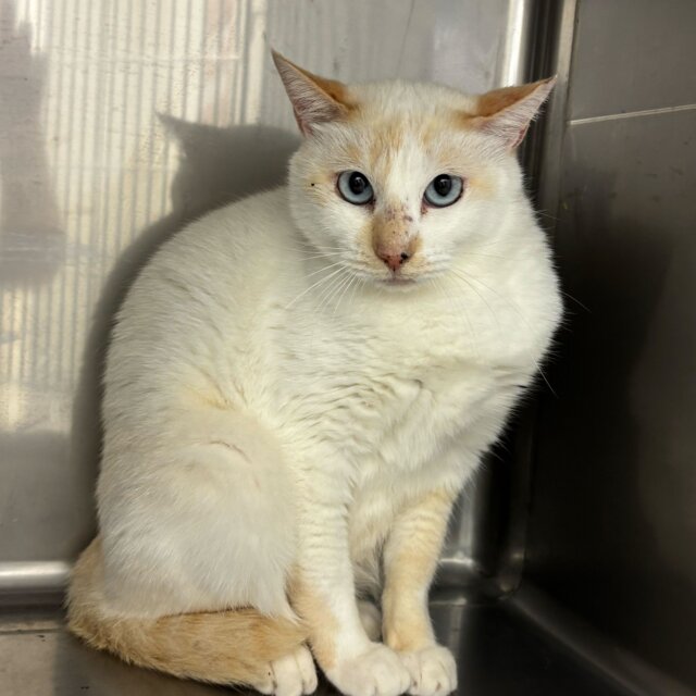 体は真っ白に近く、耳、顔、尻尾など体温が低いところに色が入っているのが特徴です!この特徴を持つ猫ちゃんは青い美しい瞳がとっても綺麗!