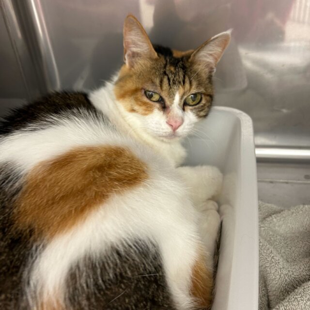 健康状態は良好。避妊手術の実施状況が不明なので後日確認いたします。