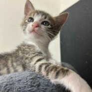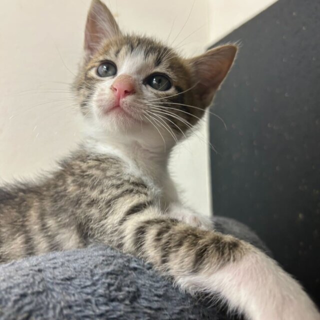 茶白のスイカくんとは兄弟で、スイカくんはすでに家族が決まり卒業しました。