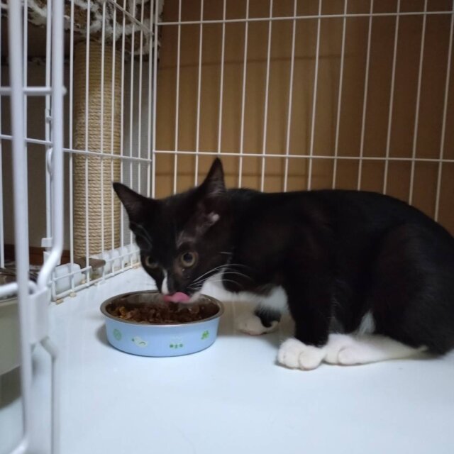 ちょっとビビりな食いしん坊。食べ物のためなら撫でられるのは我慢するニャ~という男の子。