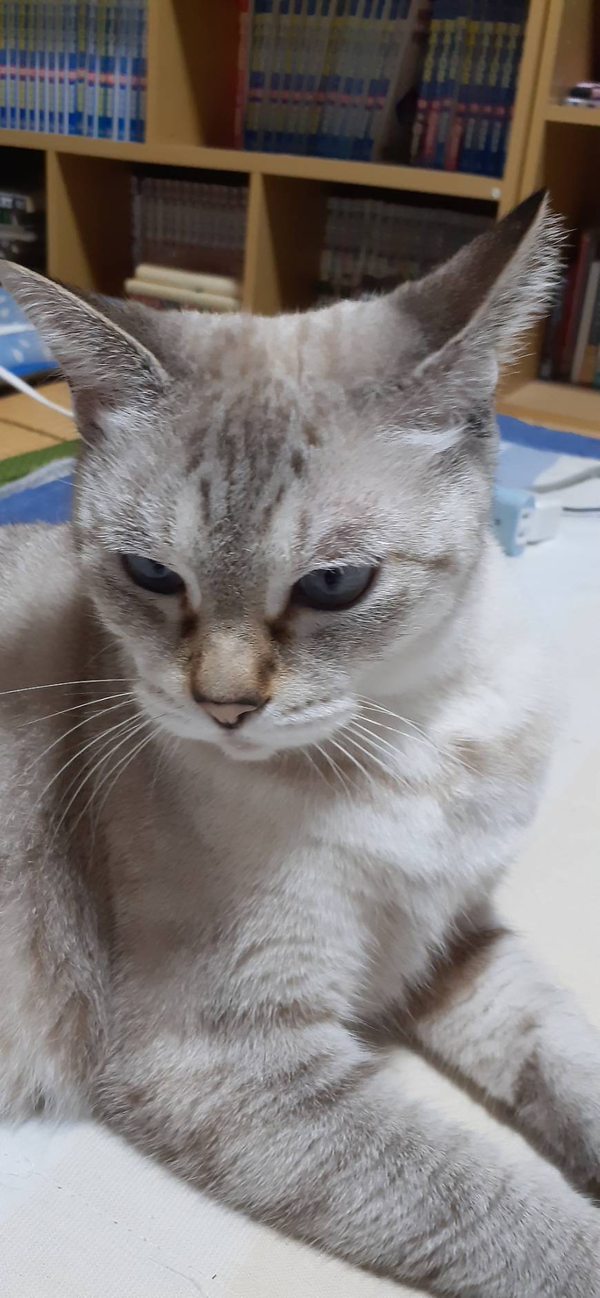 臆病なので人になれるのに時間がかかりますが、心を許した人には耳の後ろを撫でてもらいたくて、寄ってきます マヨネーズが好きです