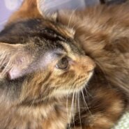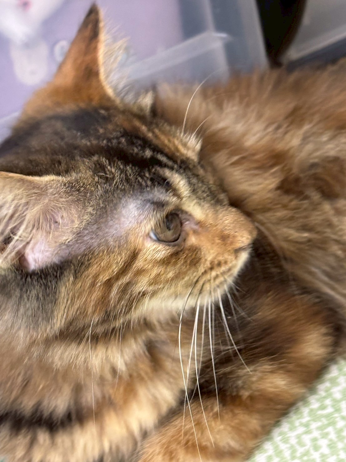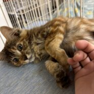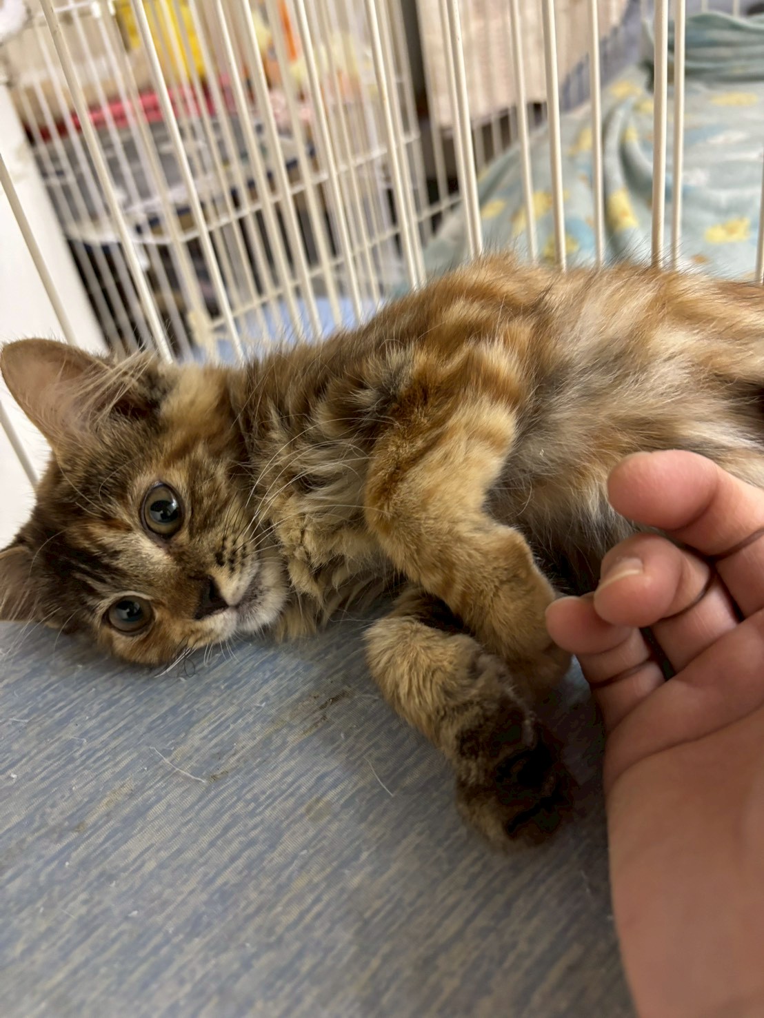 珍しい「サビトラ」模様の、長毛気味の子猫ちゃんです。