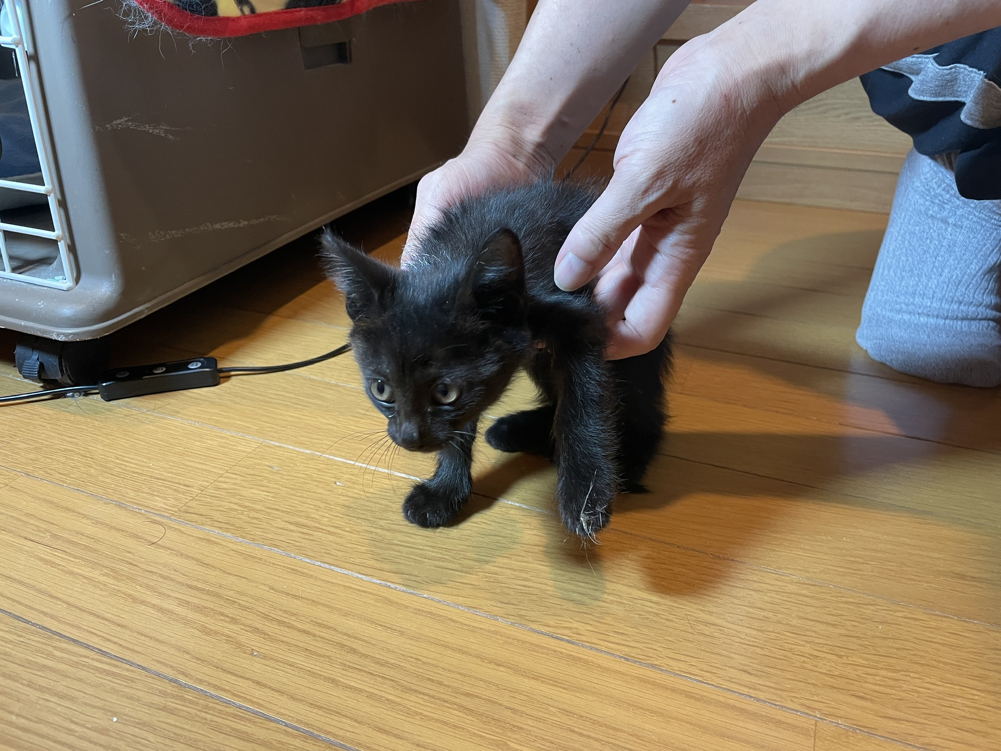 大きな駐車場の用具倉庫に逃げたのですが、この状況では、誰もご飯も水もくれない感じで、3日も経てば死んじゃうと思い保護しました。