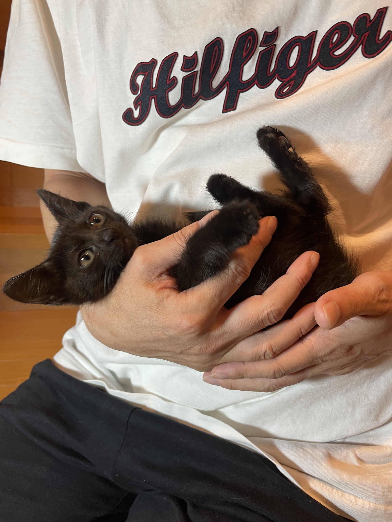 人なつっこくてとっても元気です!元気すぎてご飯の時が大変なぐらい。でも膝の上でゆっくりとなでてあげるとグルグルといって落ち着きます。