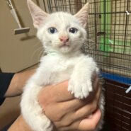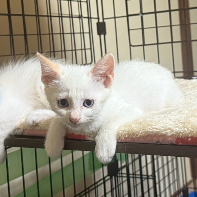 白猫かと思いきや、お耳や尻尾などいずれ茶色が濃く出てくるかもしれません。青い目のイケメンくんです♡